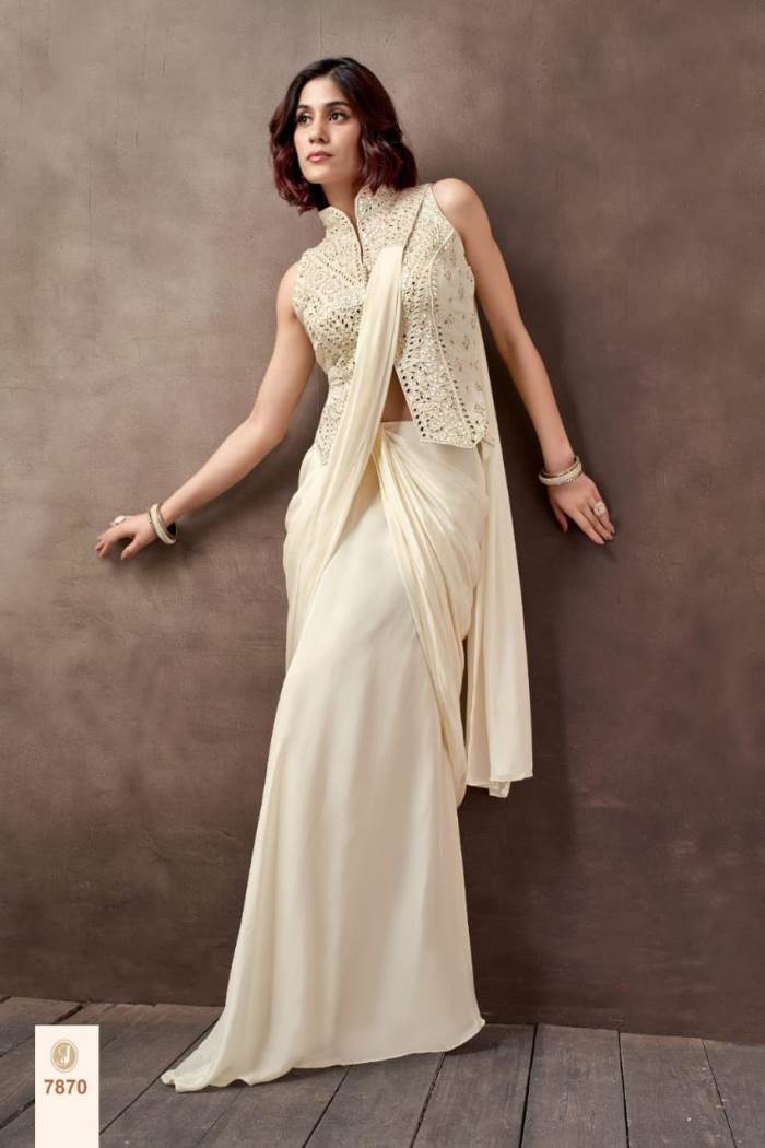 Cream Color Party Wear Designer Indo-Western Plazo Suit