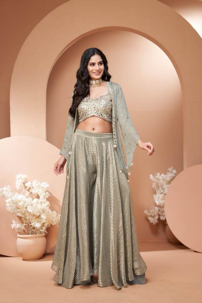 Green Color Party Wear Designer Indo-Western Plazo Suit