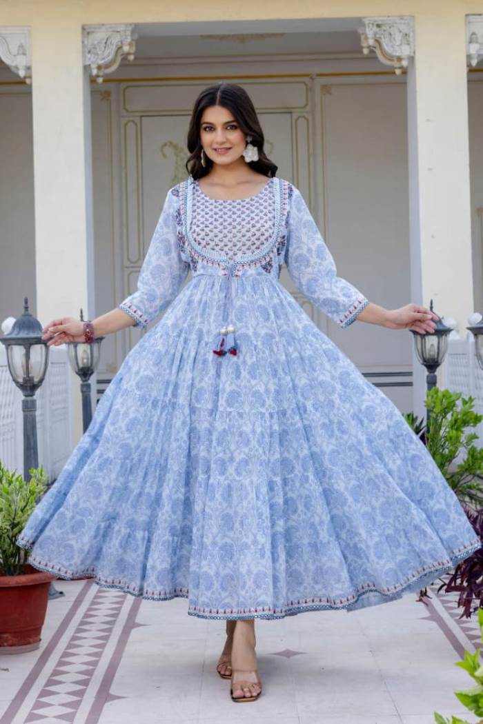 Blue Color Party Wear Designer Indo-Western Plazo Suit