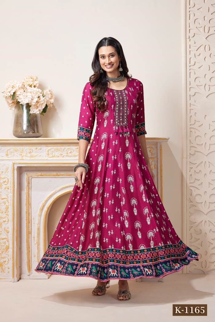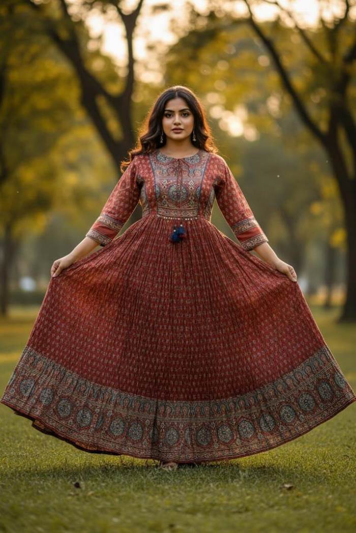 Lovendor Color Spaghetti Style Casual Wear Gown Kurti