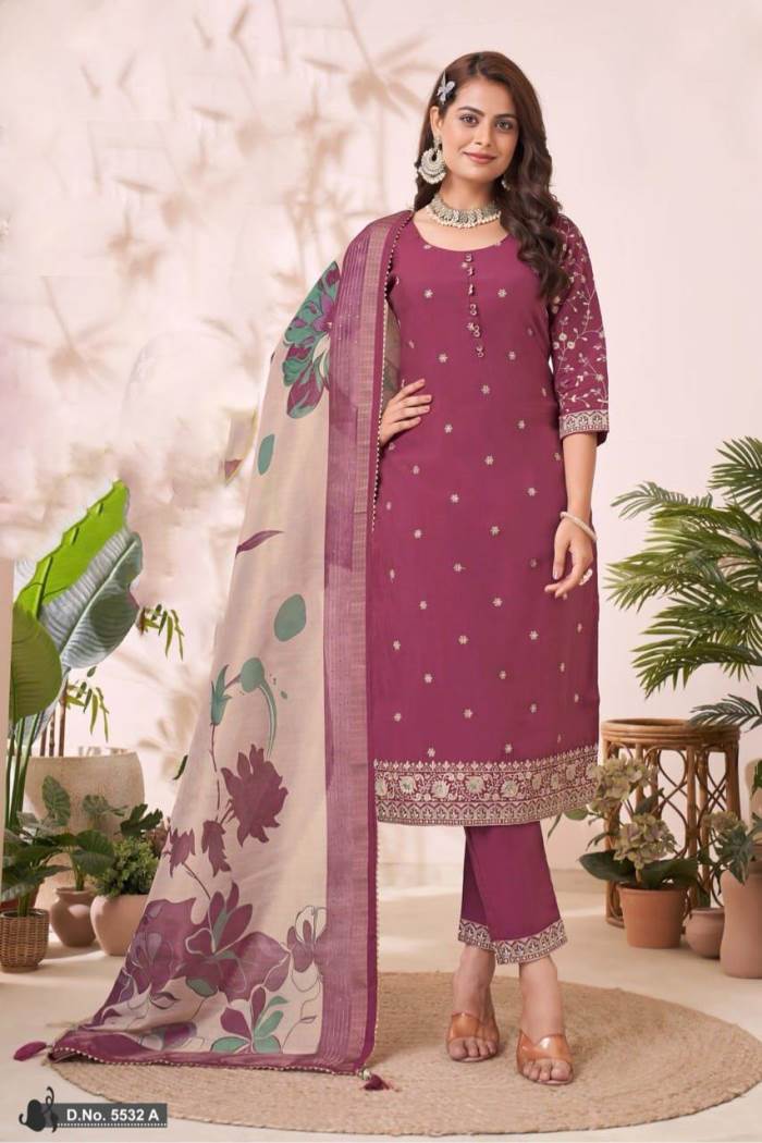 Rama Color Designer Printed Anarkali Style Kurti Set