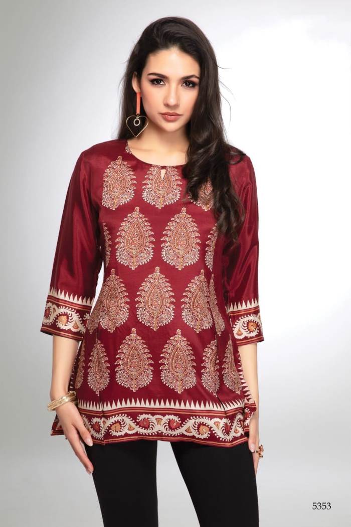 Maroon Color Casual Collection Printed Short Kurti
