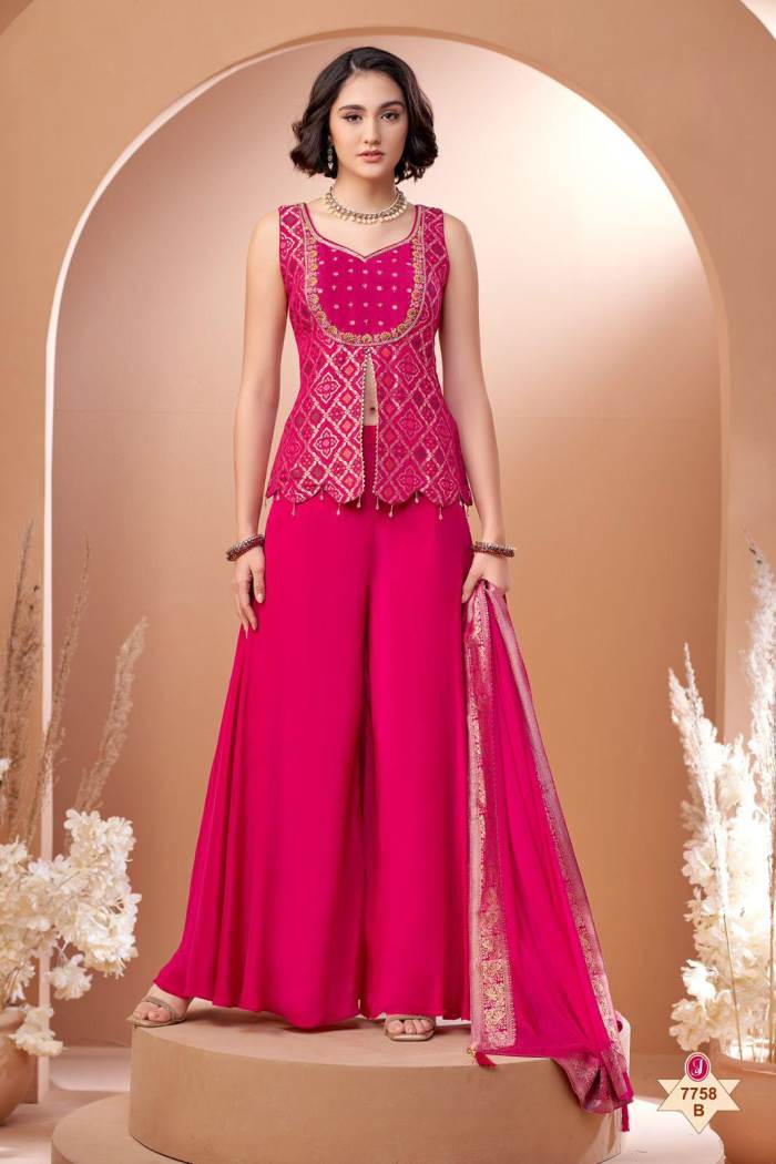 Pink Color Party Wear Designer Indo-Western Plazo Suit