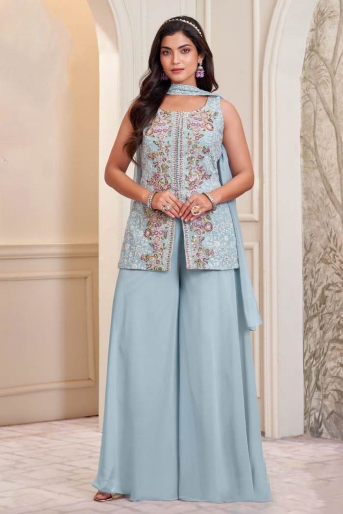Navy Color Party Wear Designer Indo-Western Plazo Suit
