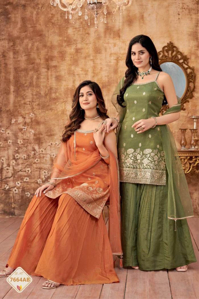 Orange Color Party Wear Designer Short Plazo Suit