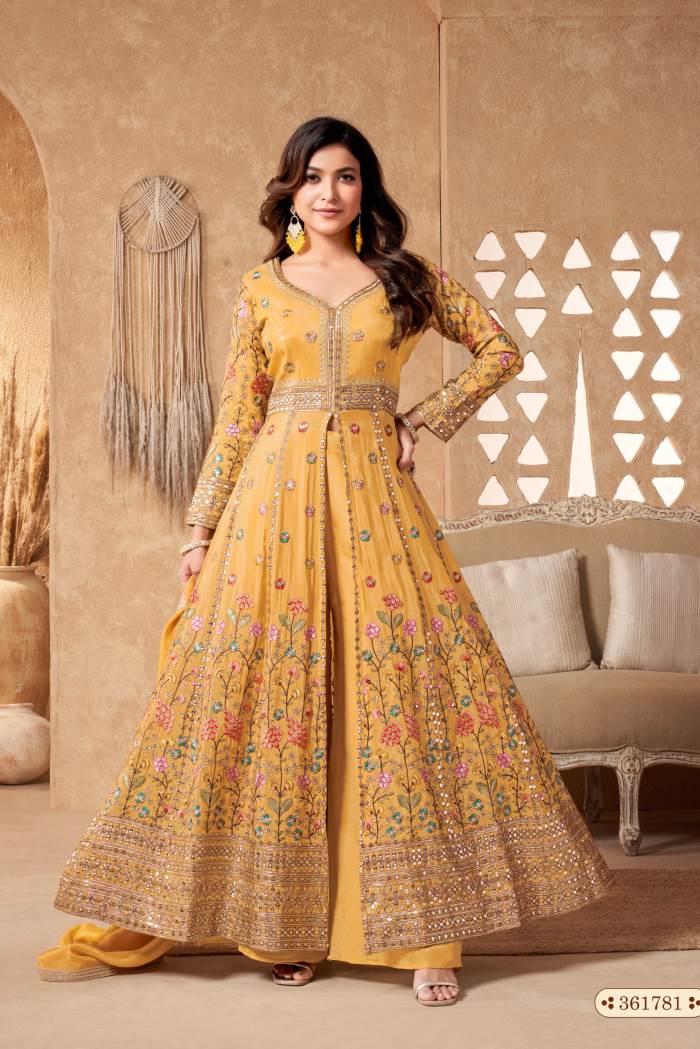 Yellow Color Party Wear Designer Indo-Western Plazo Choli with Koti