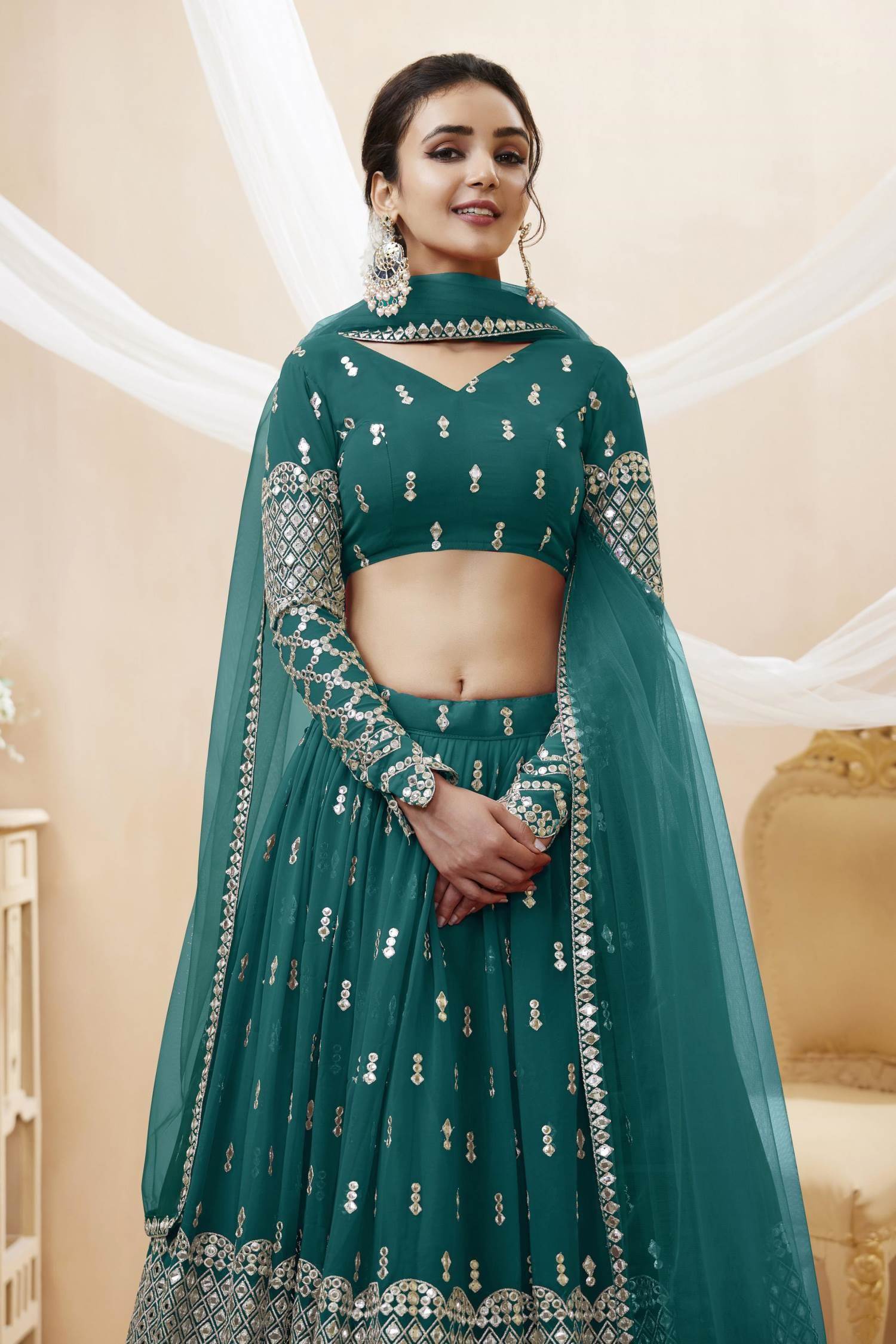 Teal Blue Color Wedding Collection Designer Semi-Stich Lehenga Choli :: ANOKHI FASHION
