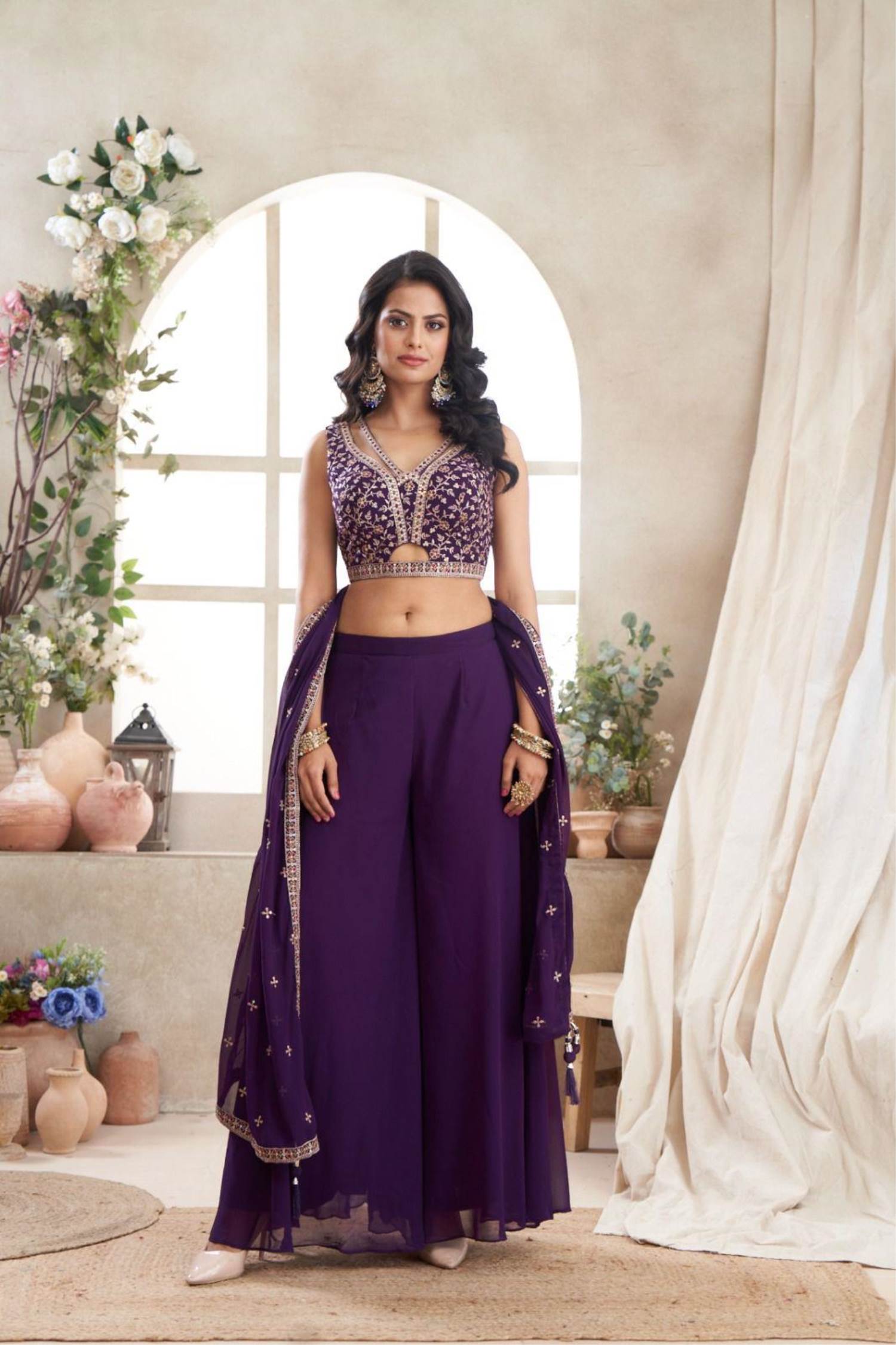 Purple Color Party Wear Designer Plazo With Choli :: ANOKHI FASHION