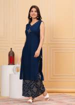 Blue Color Casual Wear Kurti With Plazo