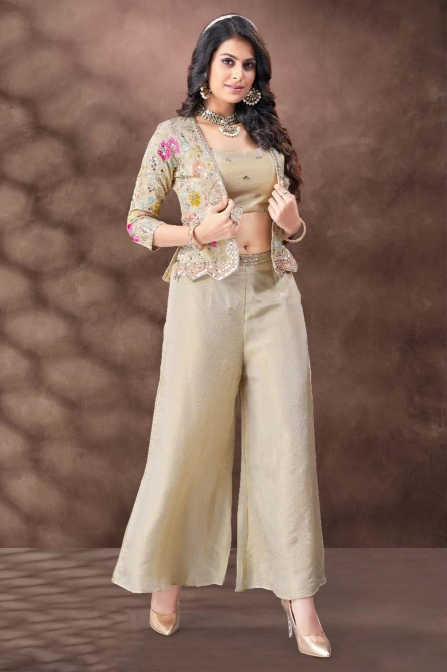 Base Color Party Wear Designer Plazo With Short Koti :: ANOKHI FASHION
