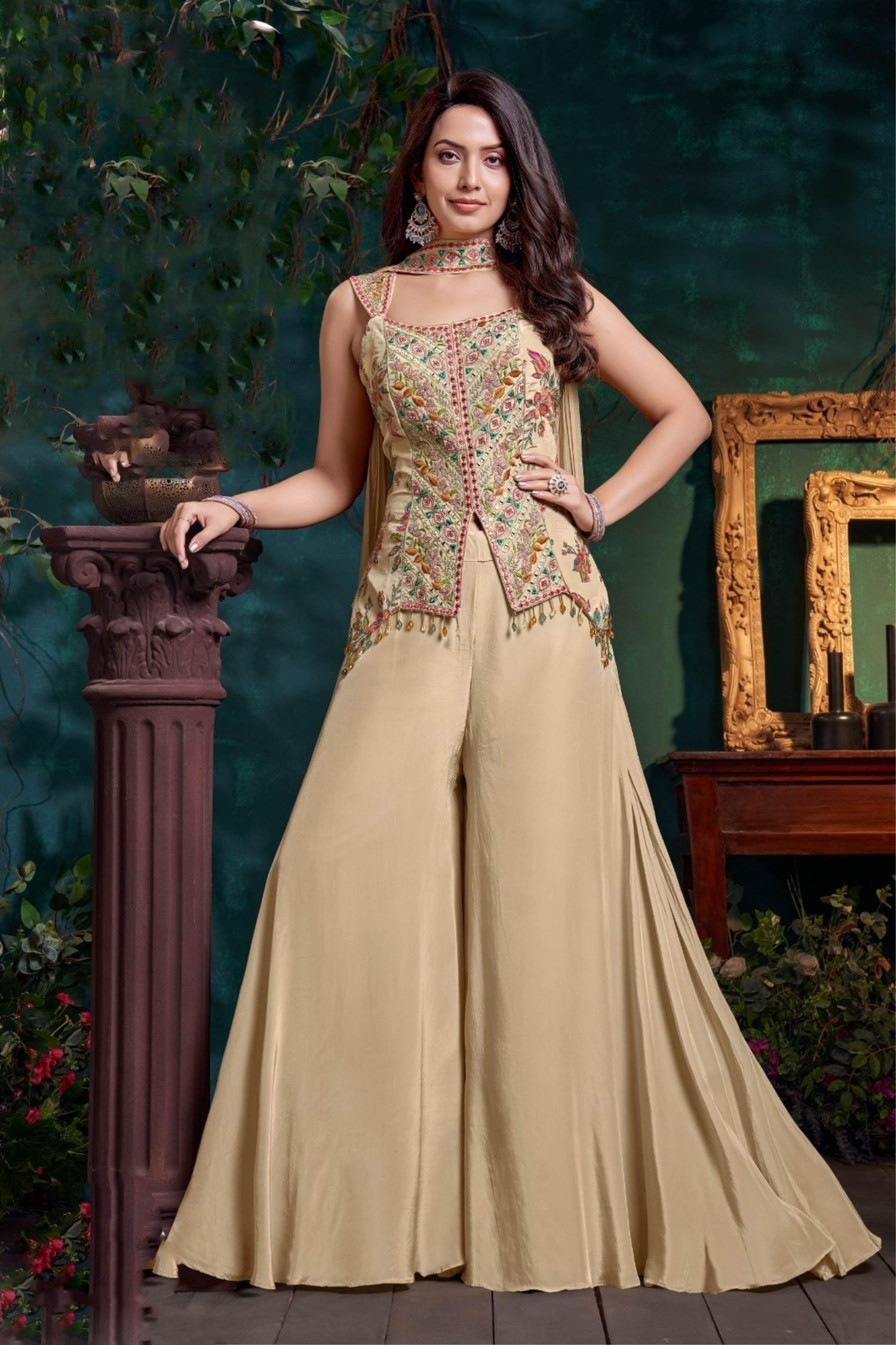 Base Color Party Wear Designer Indo-Western Plazo Suit :: ANOKHI FASHION