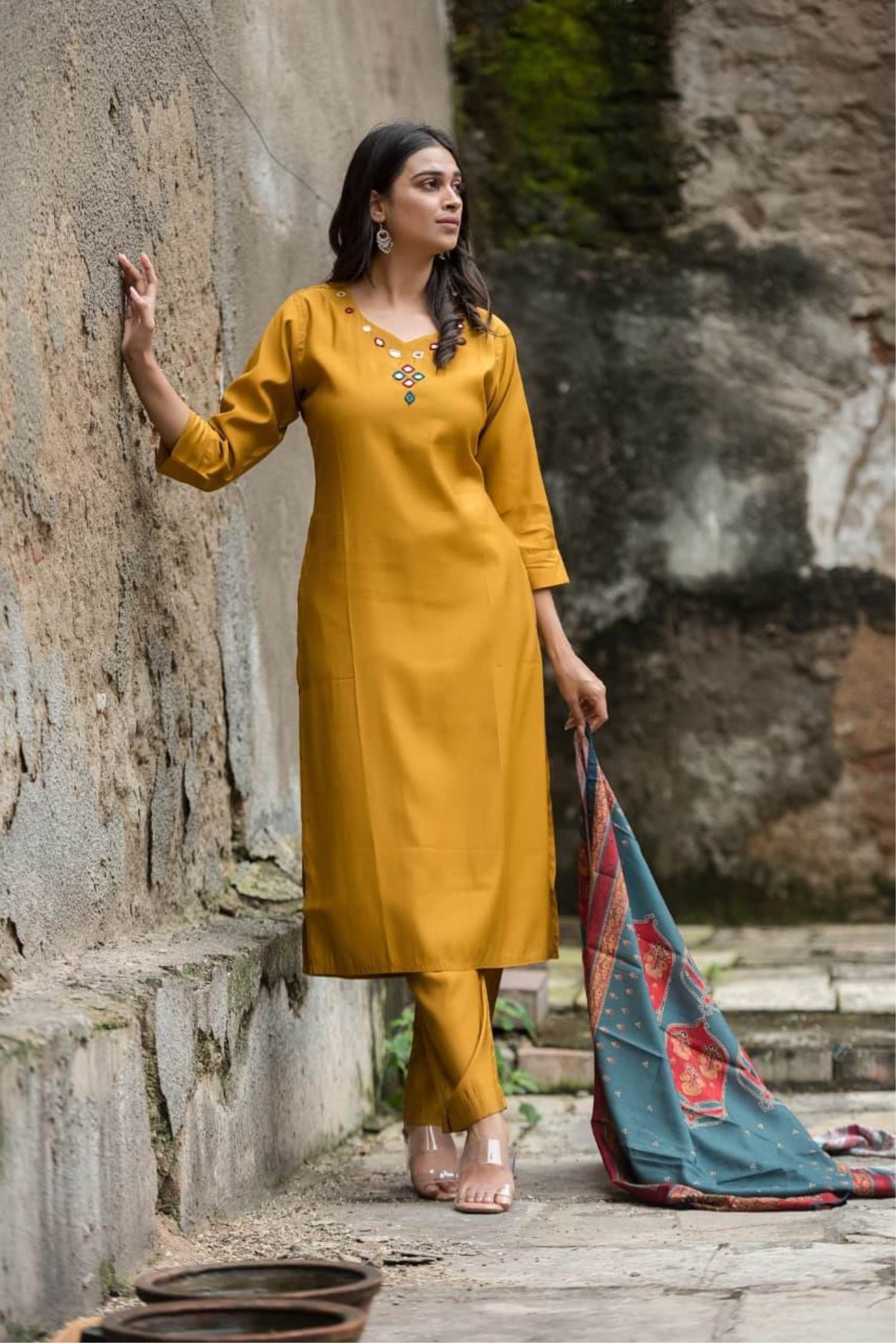 Mustard Color Casual Collection Kurti Set :: ANOKHI FASHION