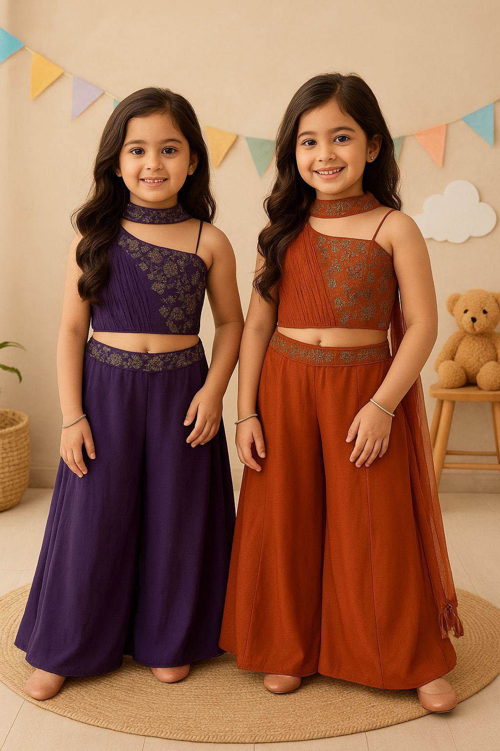 Rust Color Party Wear Designer Plazo Suit :: ANOKHI FASHION