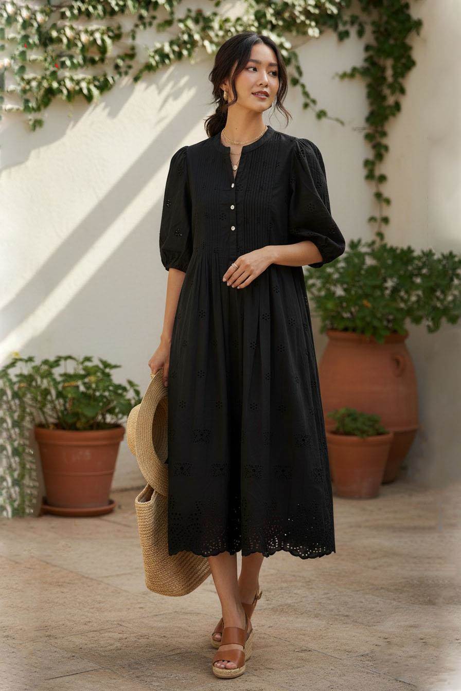 Black Color Casual Collection Cotton Gown Kurti :: ANOKHI FASHION