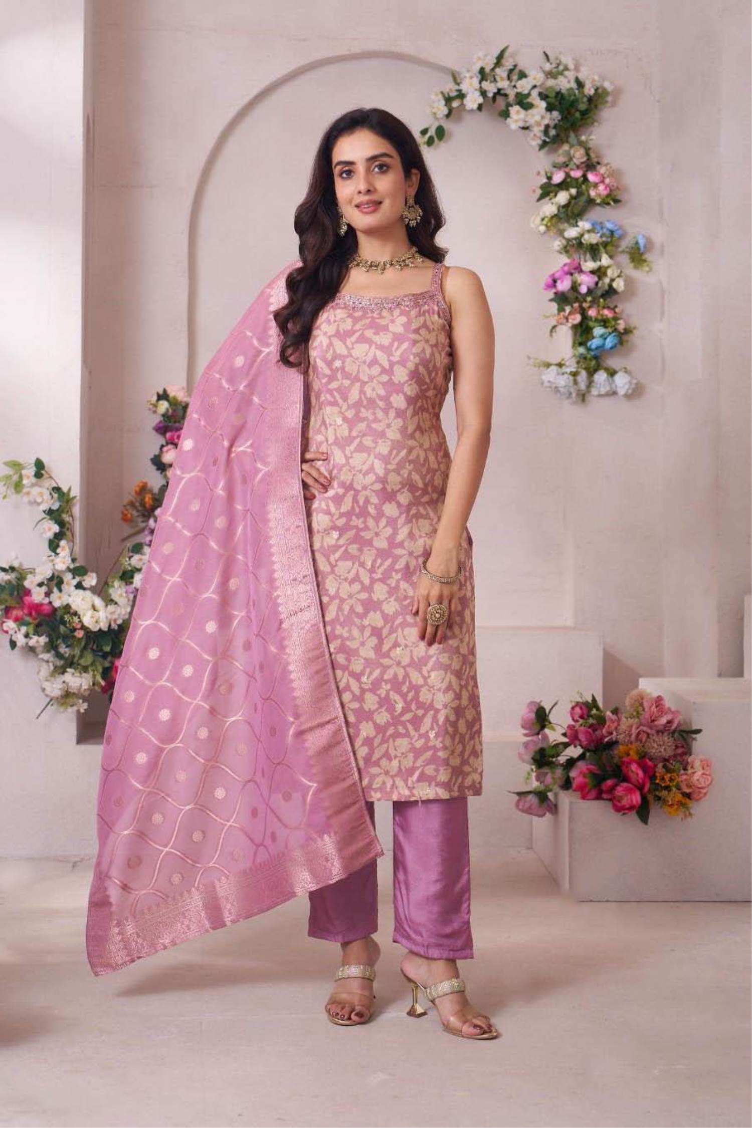 Onion Color Party Wear Designer Straight Long Suit :: ANOKHI FASHION