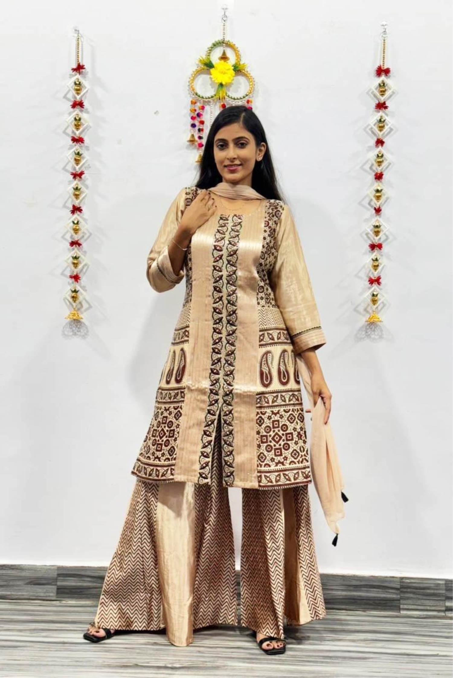 Cream Color Party Wear Designer Indo-Western Plazo Suit