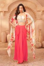 Pink Color Party Wear Designer Indo-Western Skirt Choli with Koti