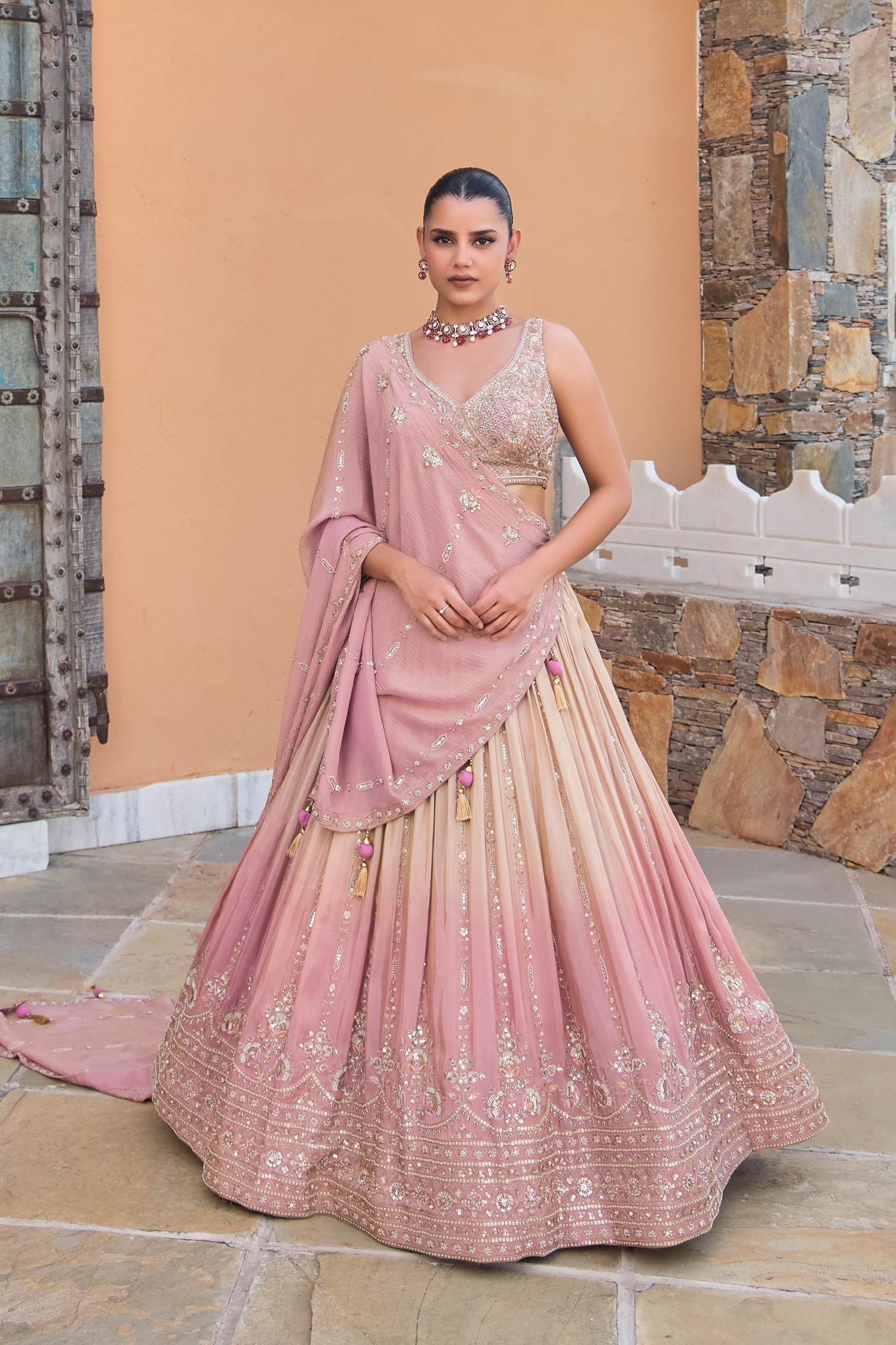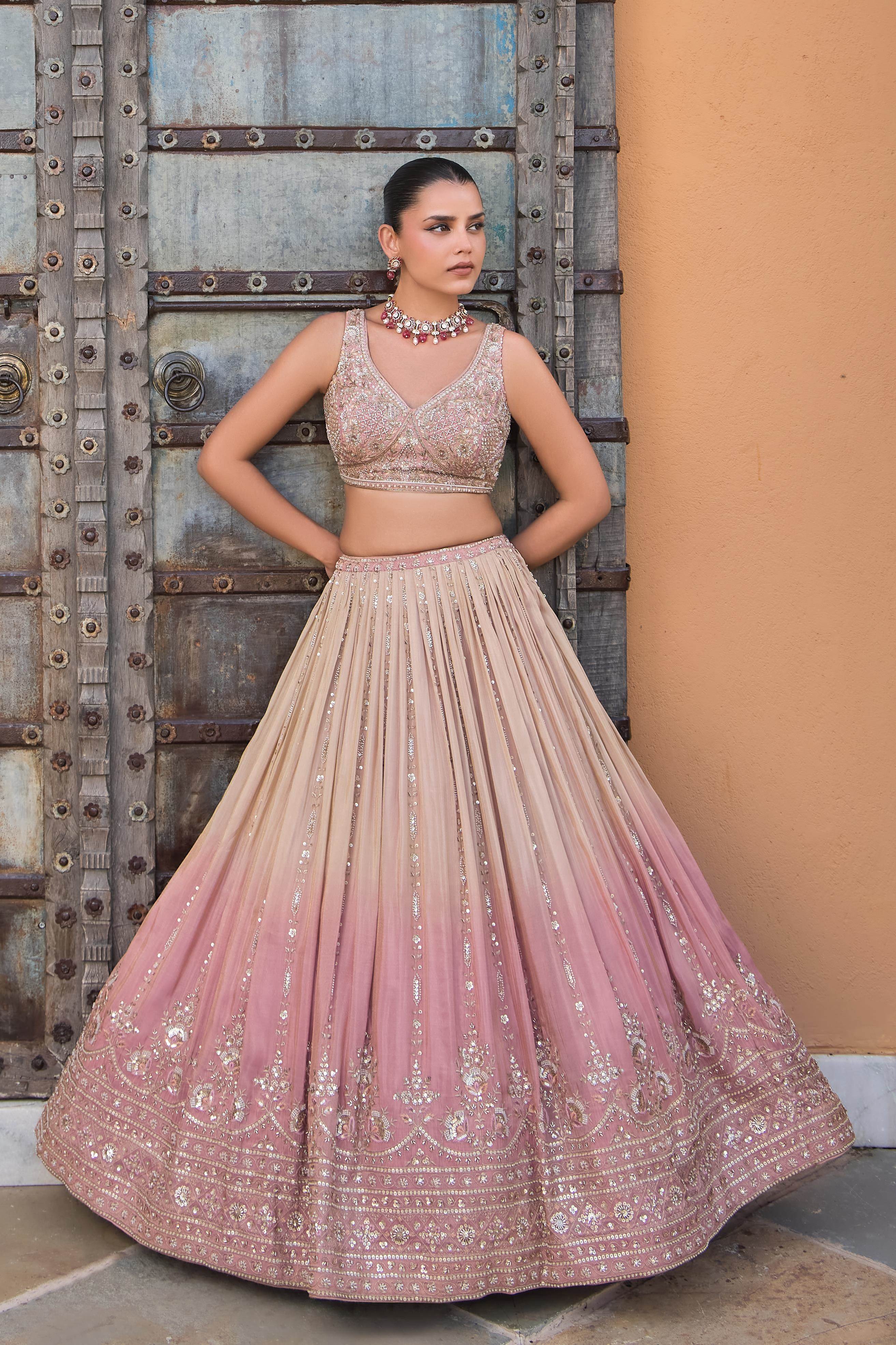 Peach Color Wedding Collection Designer Lehenga Choli :: ANOKHI FASHION