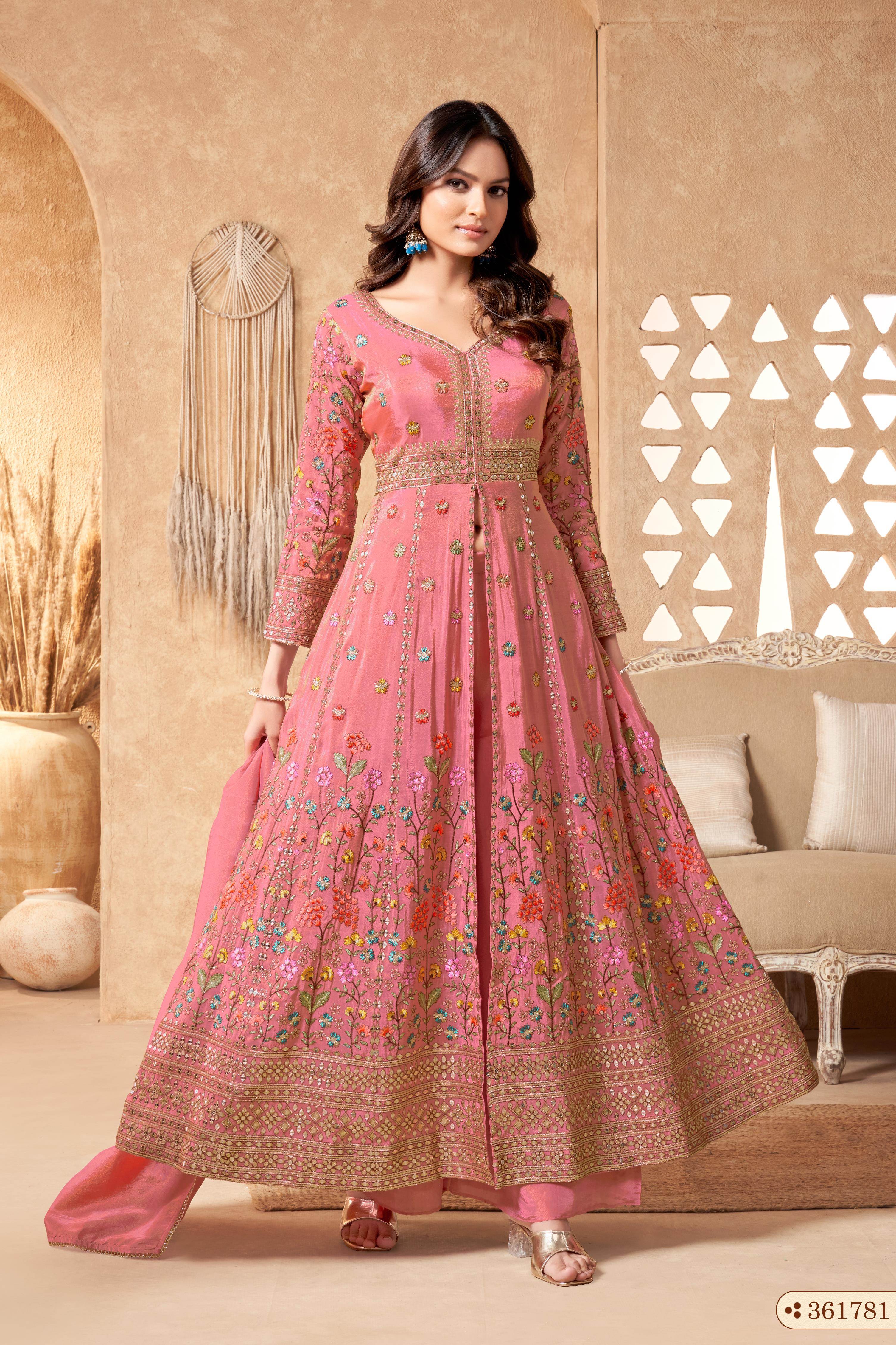 Gajari Color Party Wear Designer Indo-Western Plazo Suit