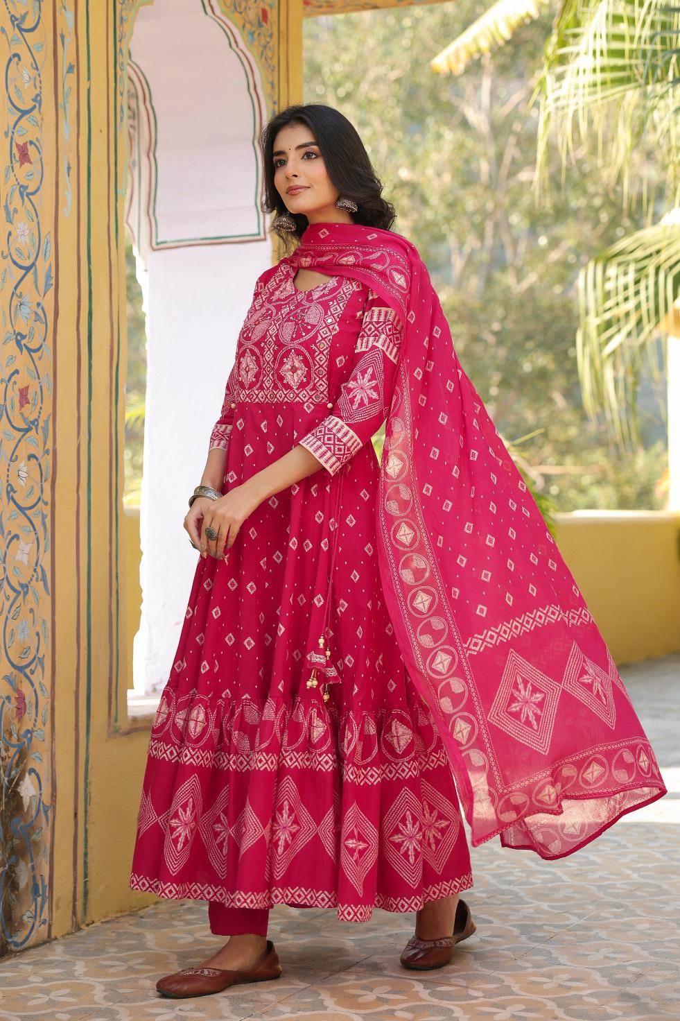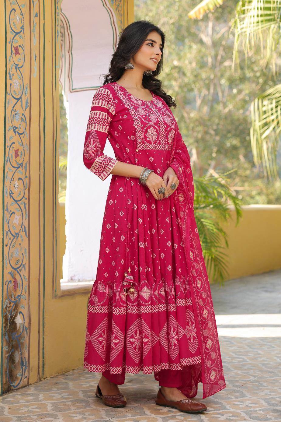 Rani Color Printed Cotton Classy Kurti Set With Dupatta :: ANOKHI FASHION