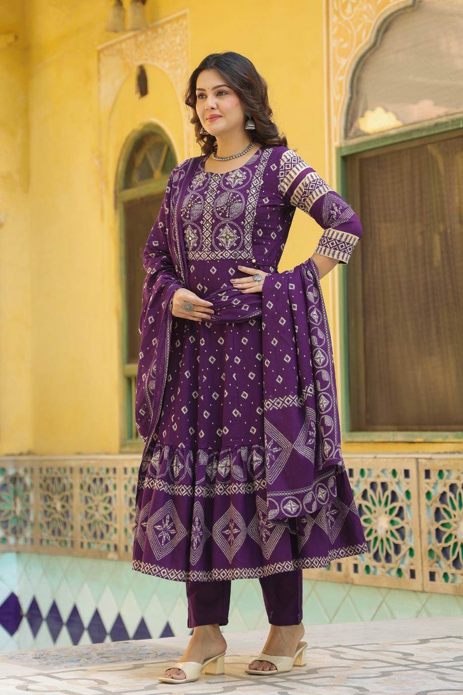 Purple Color Printed Cotton Classy Kurti Set With Dupatta :: ANOKHI FASHION