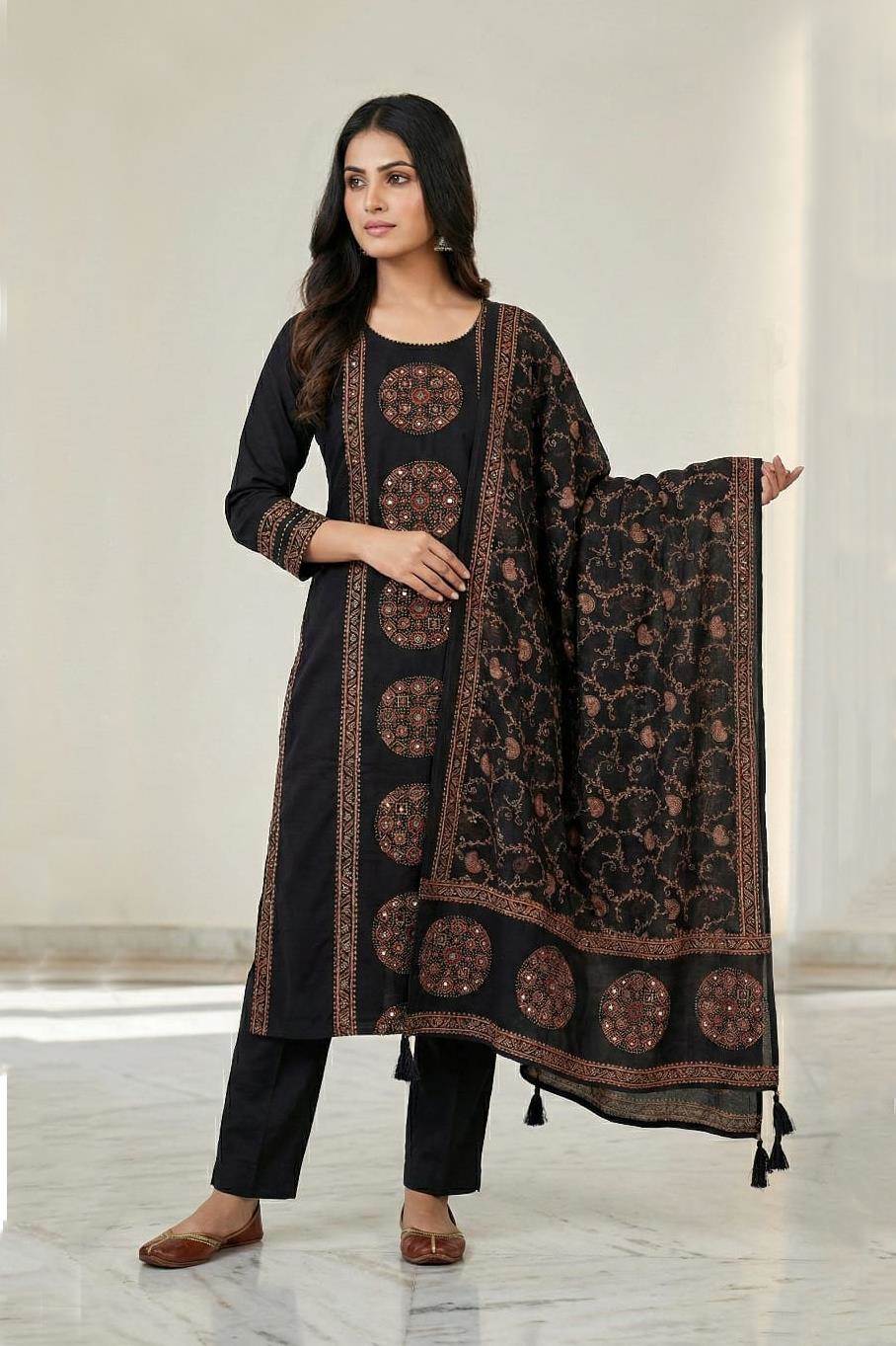 Black Color Printed Cotton Classy Kurti Set With Dupatta :: ANOKHI FASHION