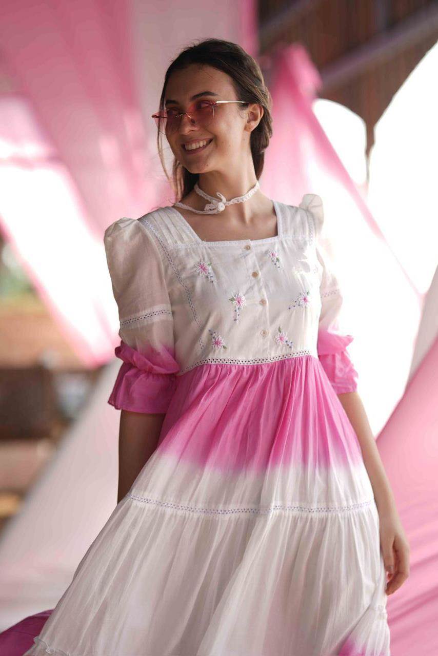 White Color Casual Wear Designer Cotton Gown Kurti :: ANOKHI FASHION