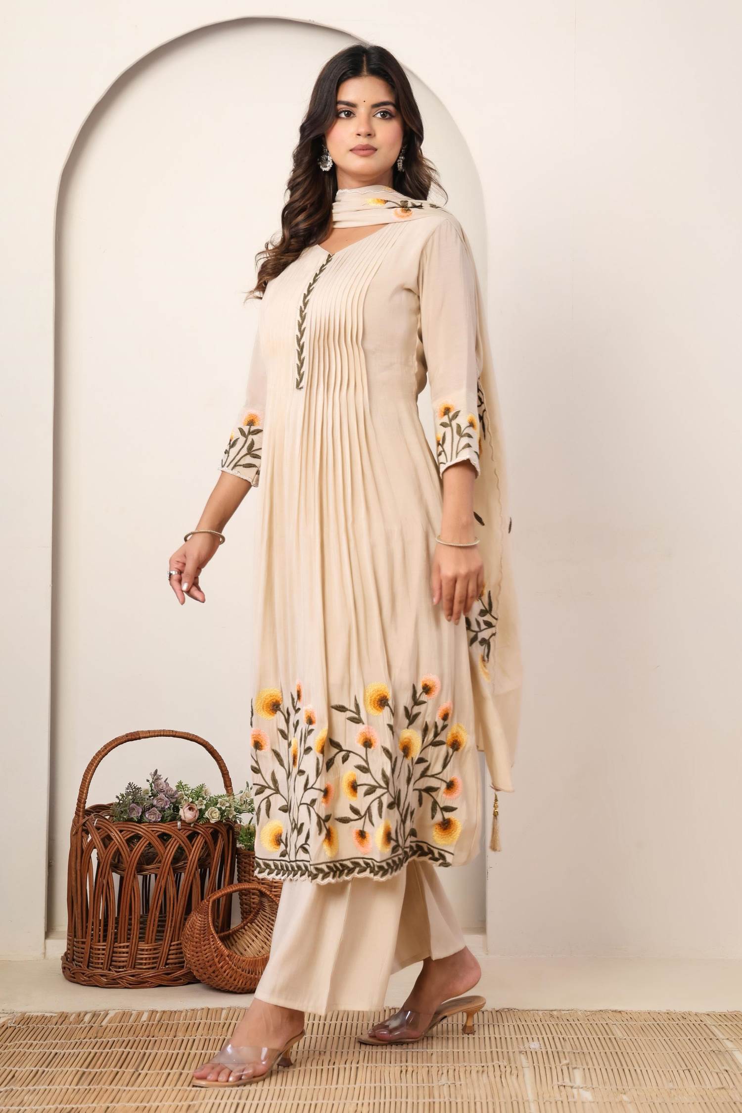 Cream Color Designer Anarkali Style Kurti Set :: ANOKHI FASHION