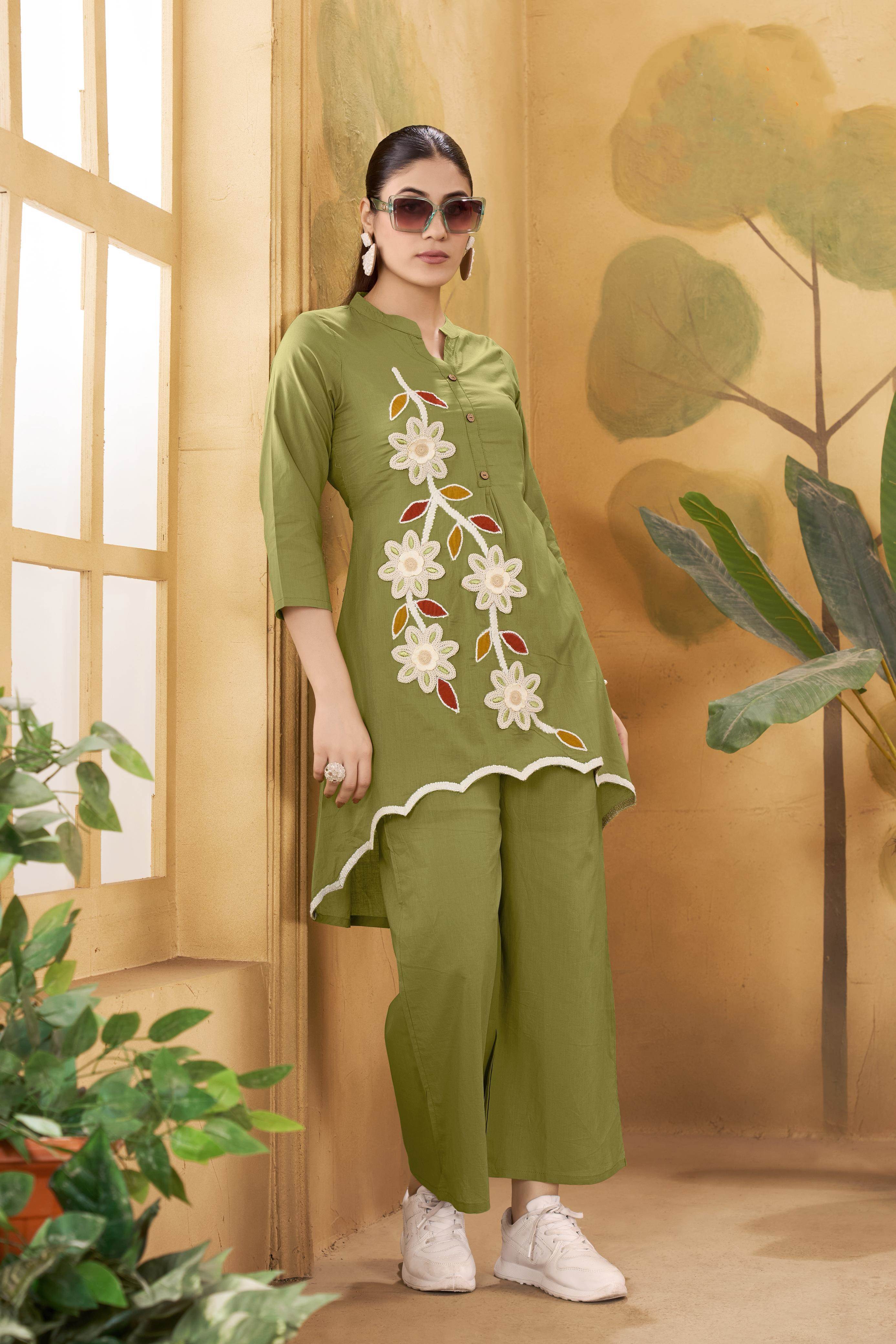 Mehandi Color Casual Wear Trendy Co-ord Set :: ANOKHI FASHION