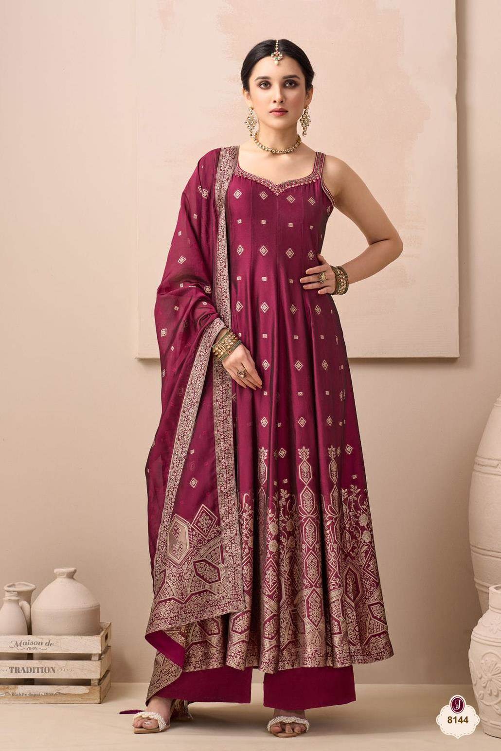 Wine Color Party Wear Designer Indo-Western Plazo Suit :: ANOKHI FASHION