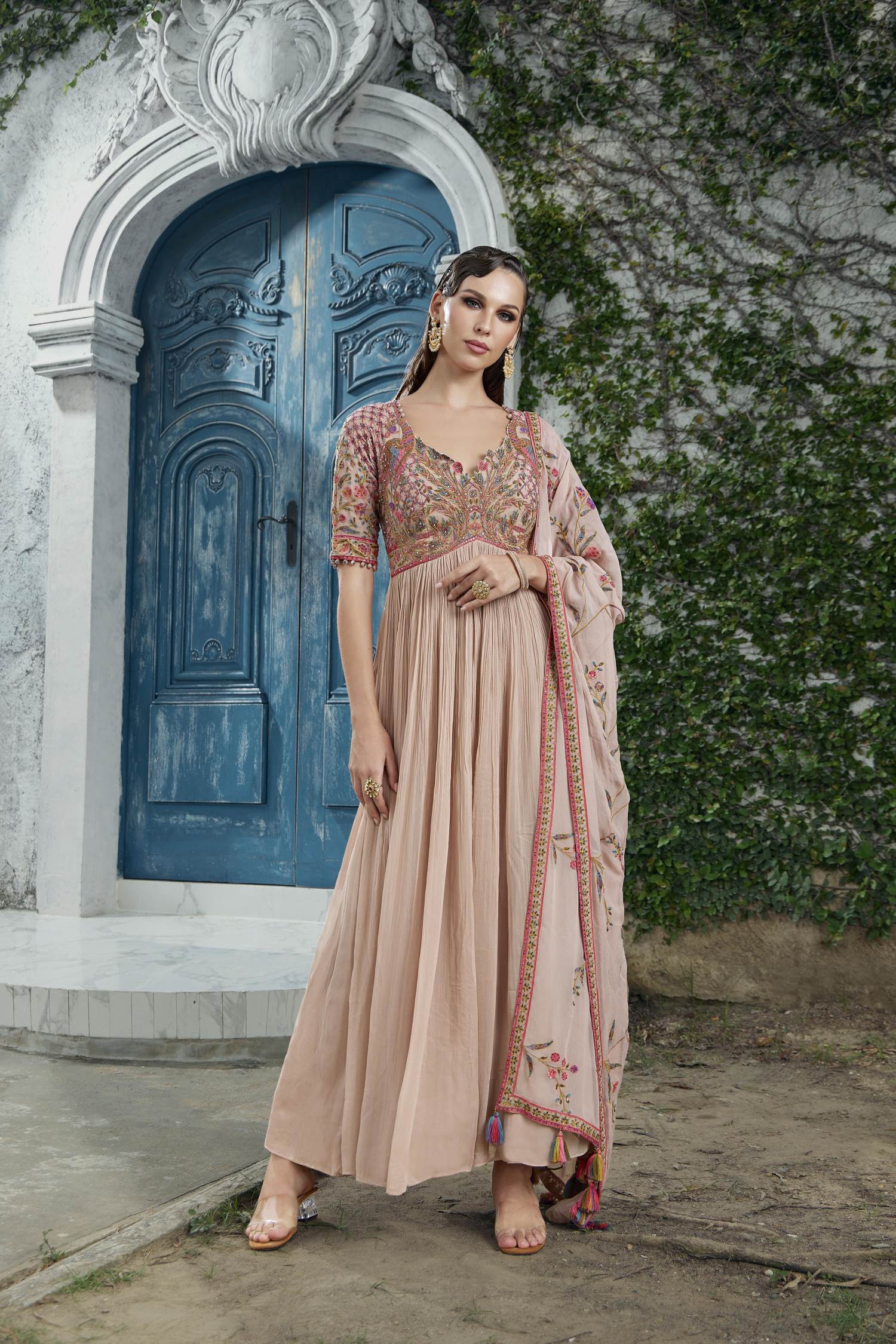 Peach Color Party Wear Designer Gown :: ANOKHI FASHION