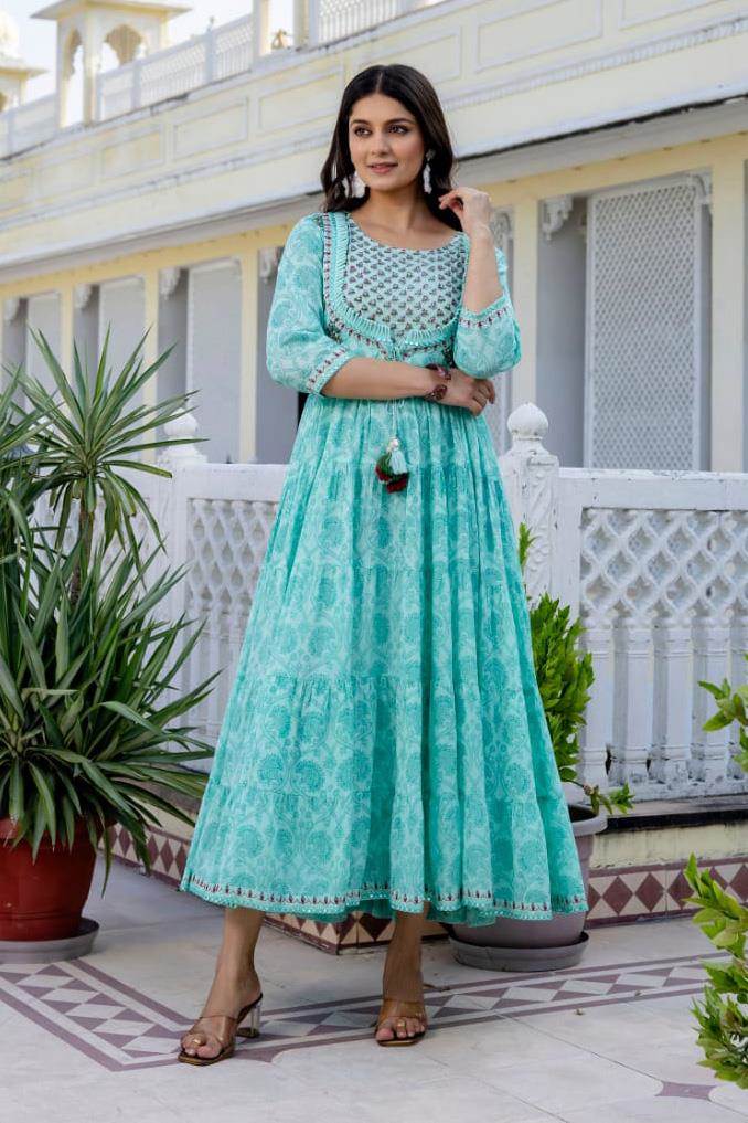 Sea Green Color Casual Wear Printed Gown Kurti :: ANOKHI FASHION