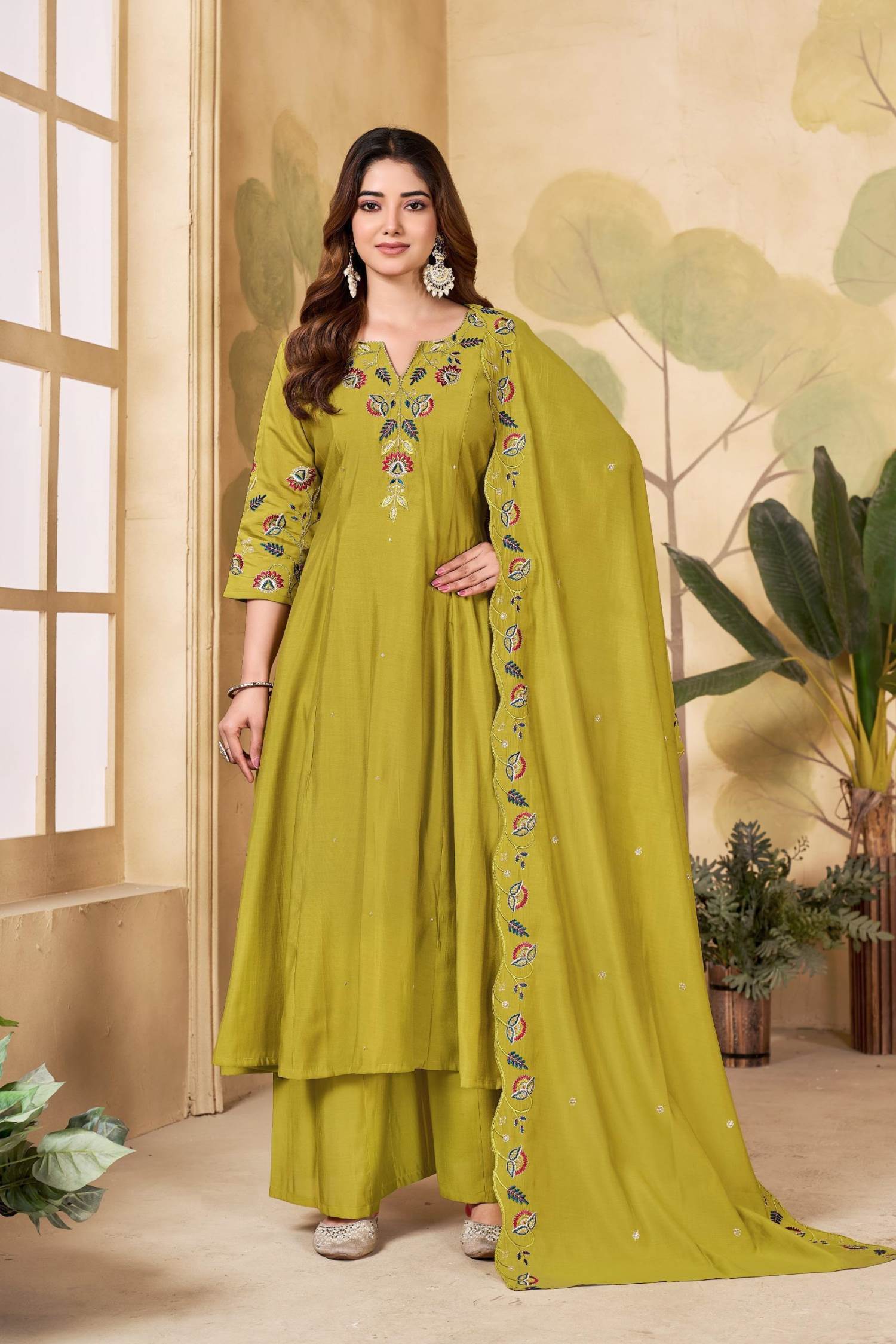Rich Gold Color Casual Wear Designer Kurti with Plazo Dupatta :: ANOKHI FASHION