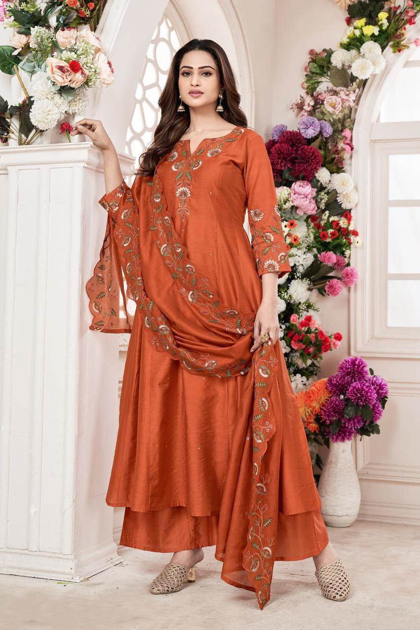 Rust Color Casual Wear Designer Kurti with Plazo Dupatta :: ANOKHI FASHION