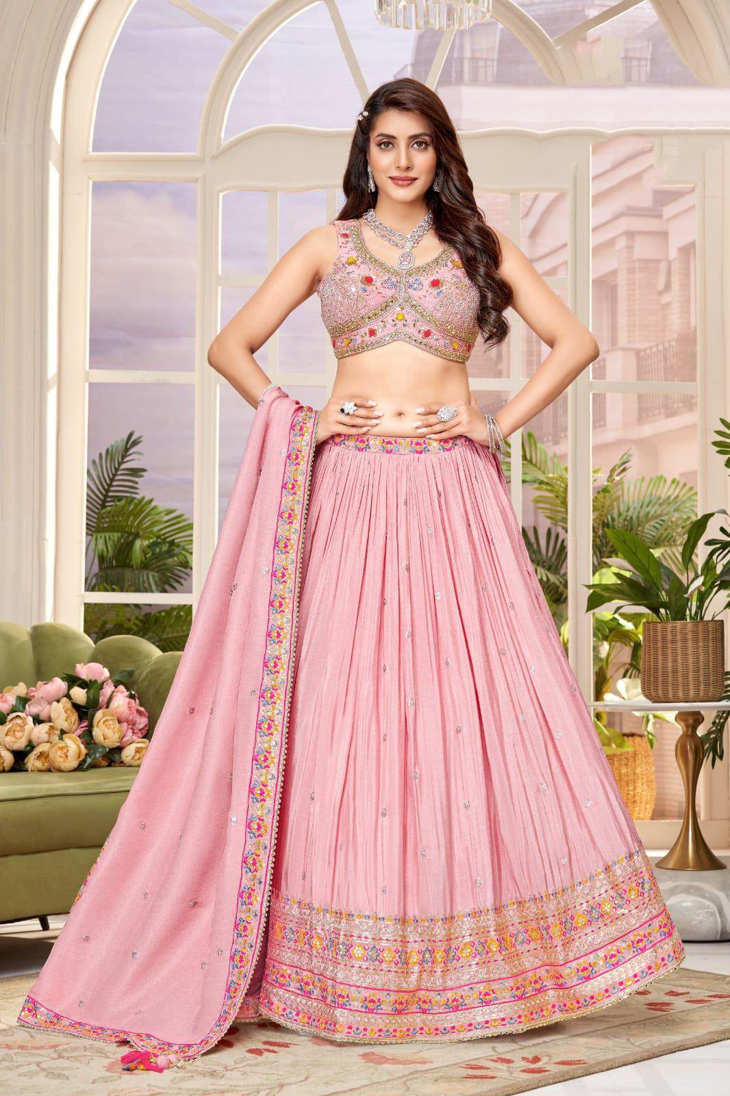 Light Pink Silk Wedding Wear Designer Lehenga Choli