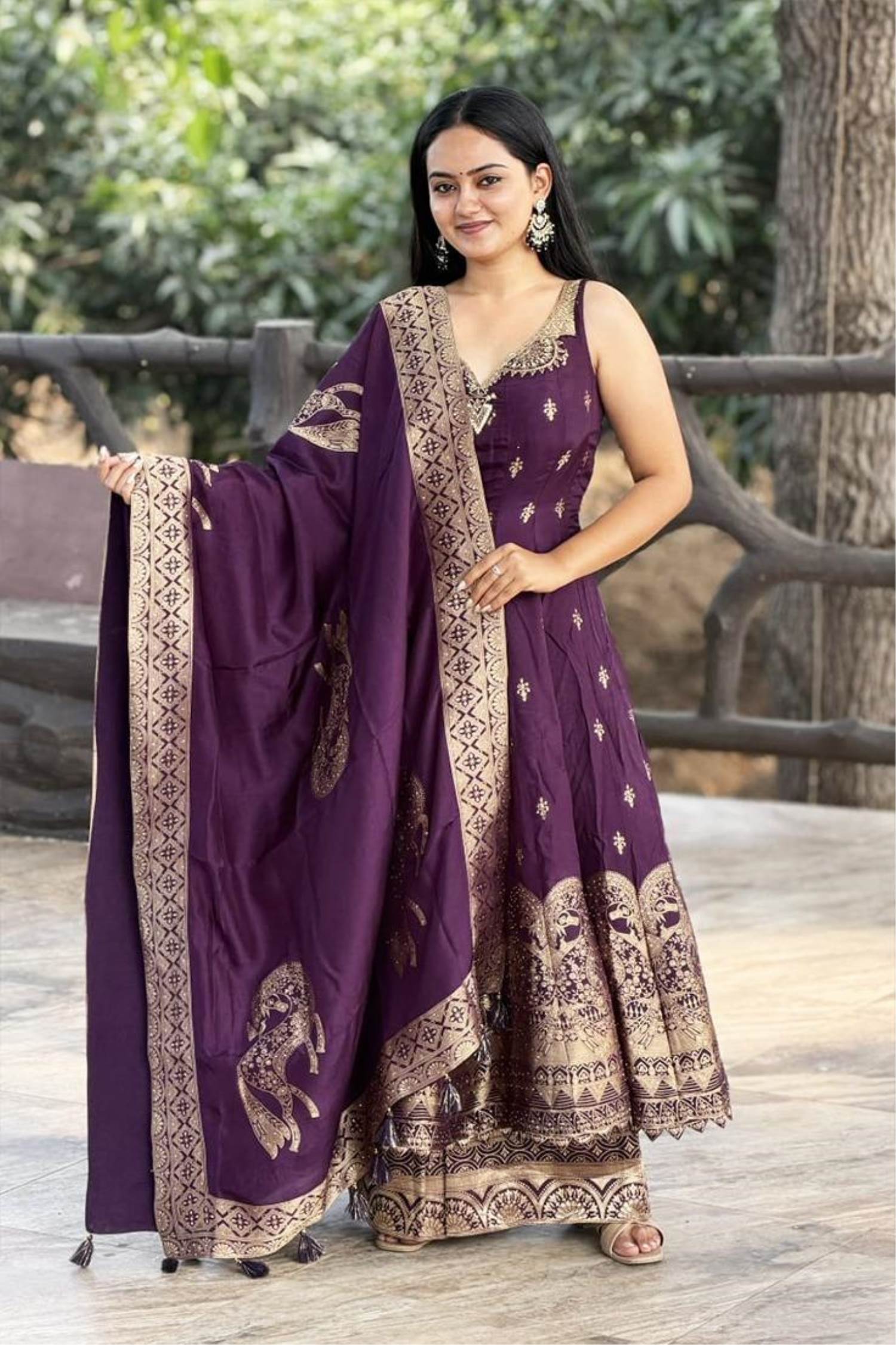 Wine Color Party Wear Designer Indo-Western Anarkali Style Plazo Suit