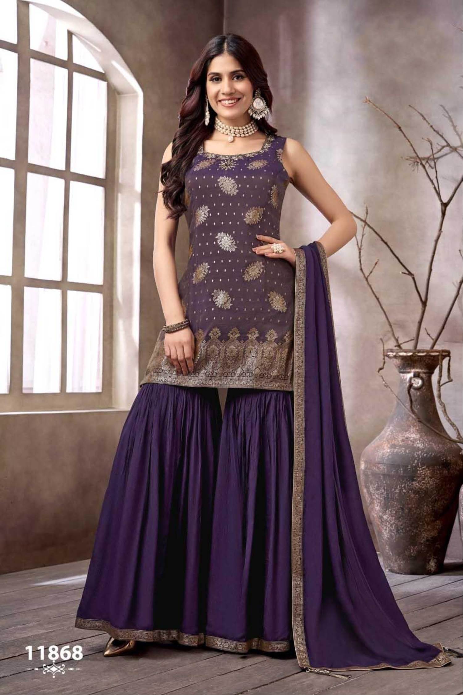 Purple Color Party Wear Designer Indo-Western Plazo Suit :: ANOKHI FASHION