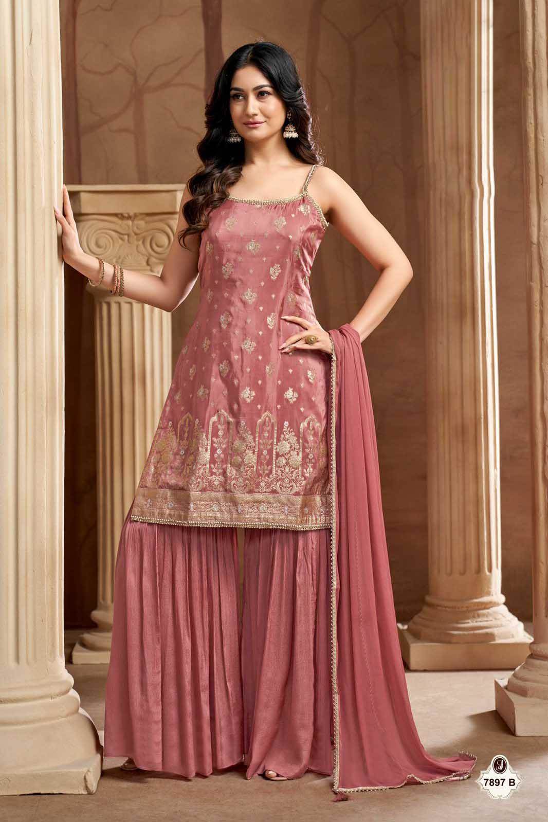 Peach Color Party Wear Designer Indo-Western Plazo Suit :: ANOKHI FASHION