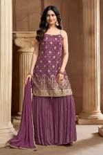 Peach Color Party Wear Designer Indo-Western Plazo Suit