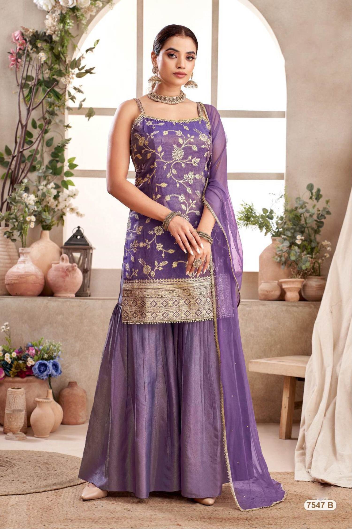 Purple Color Party Wear Designer Indo-Western Plazo Suit