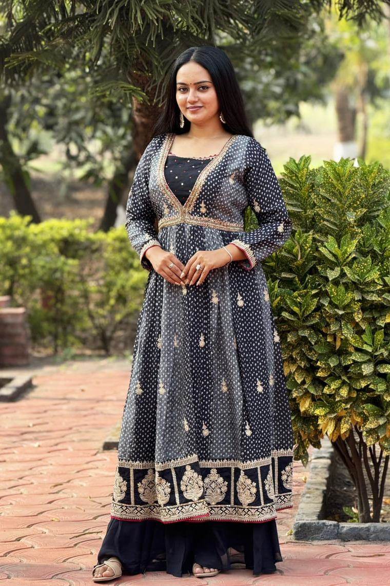 Black Color Party Wear Designer Indo-Western Plazo Suit
