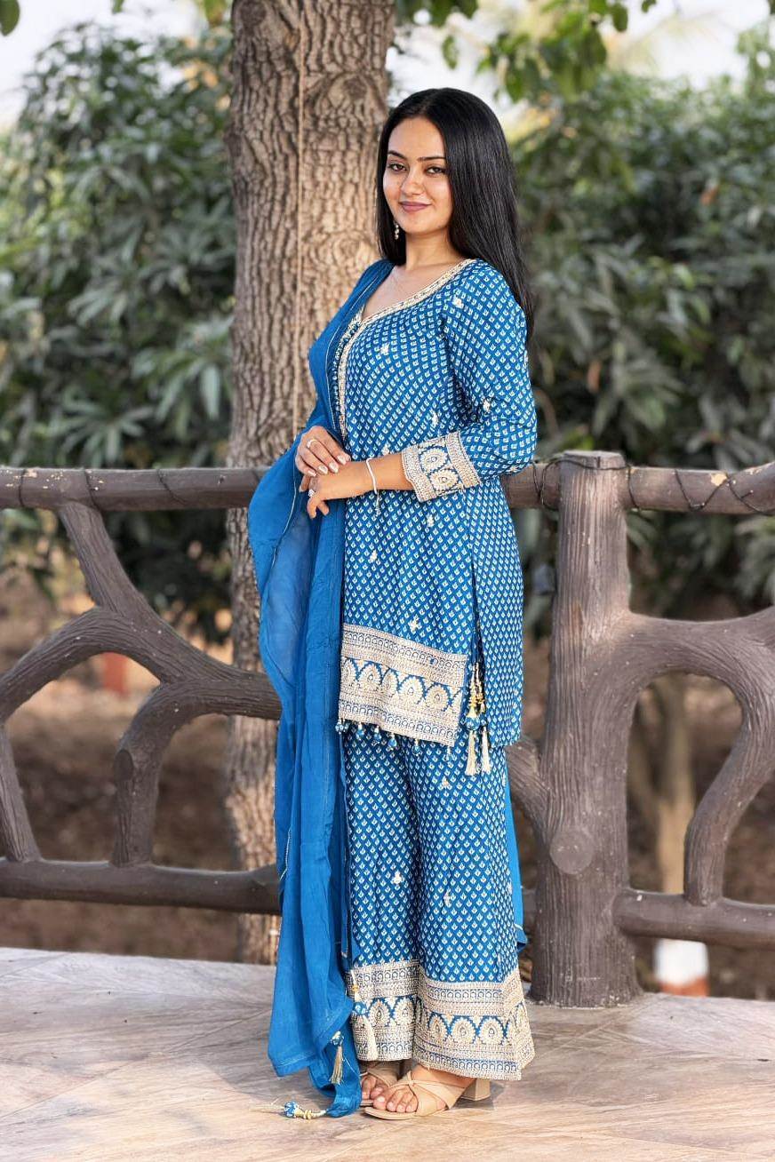 Blue Color Party Wear Designer Indo-Western Plazo Suit
