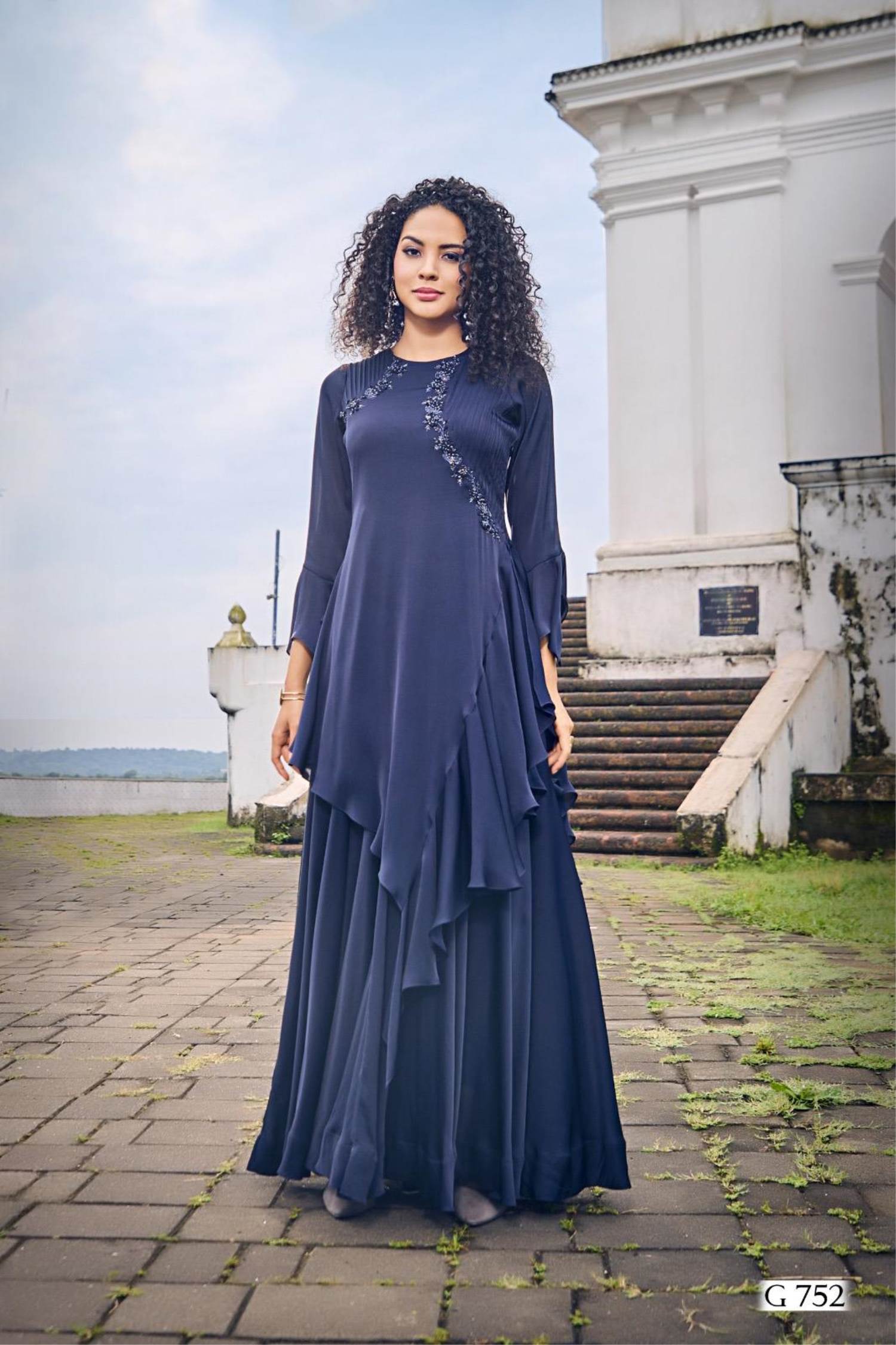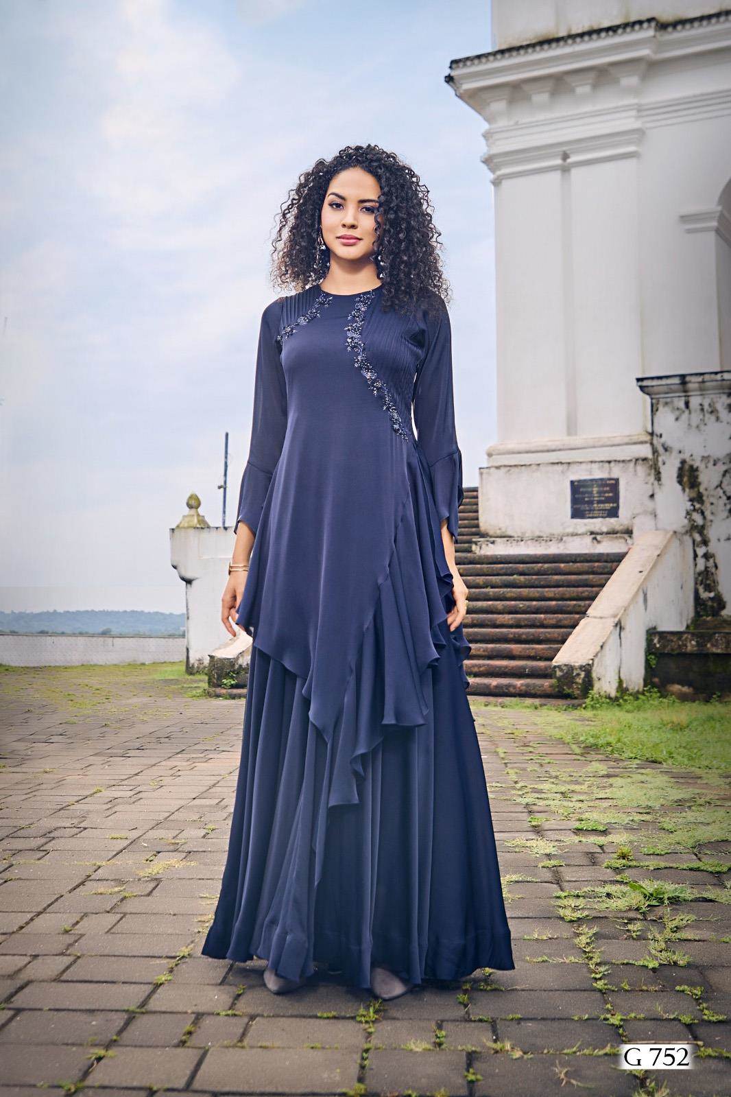 Navy Blue Color Party Wear Designer Gown Kurti :: ANOKHI FASHION