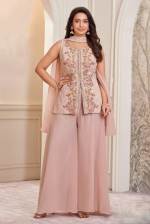 Peach Color Party Wear Designer Indo-Western Plazo Suit