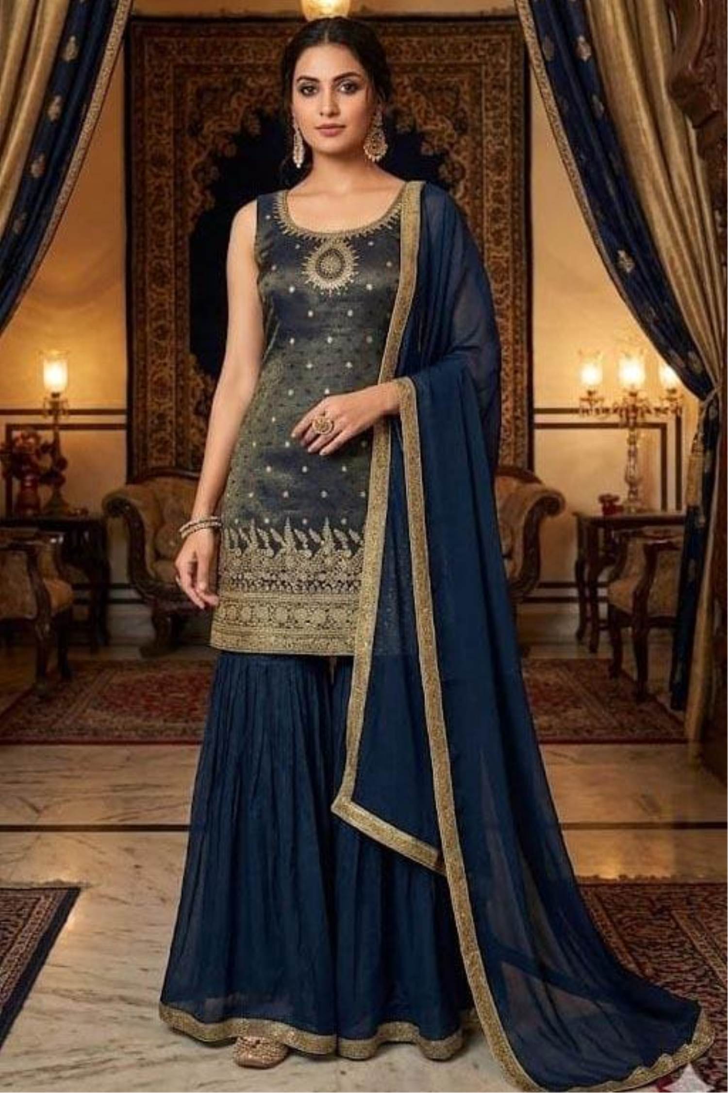 Navy Color Party Wear Designer Indo-Western Sharara Suit
