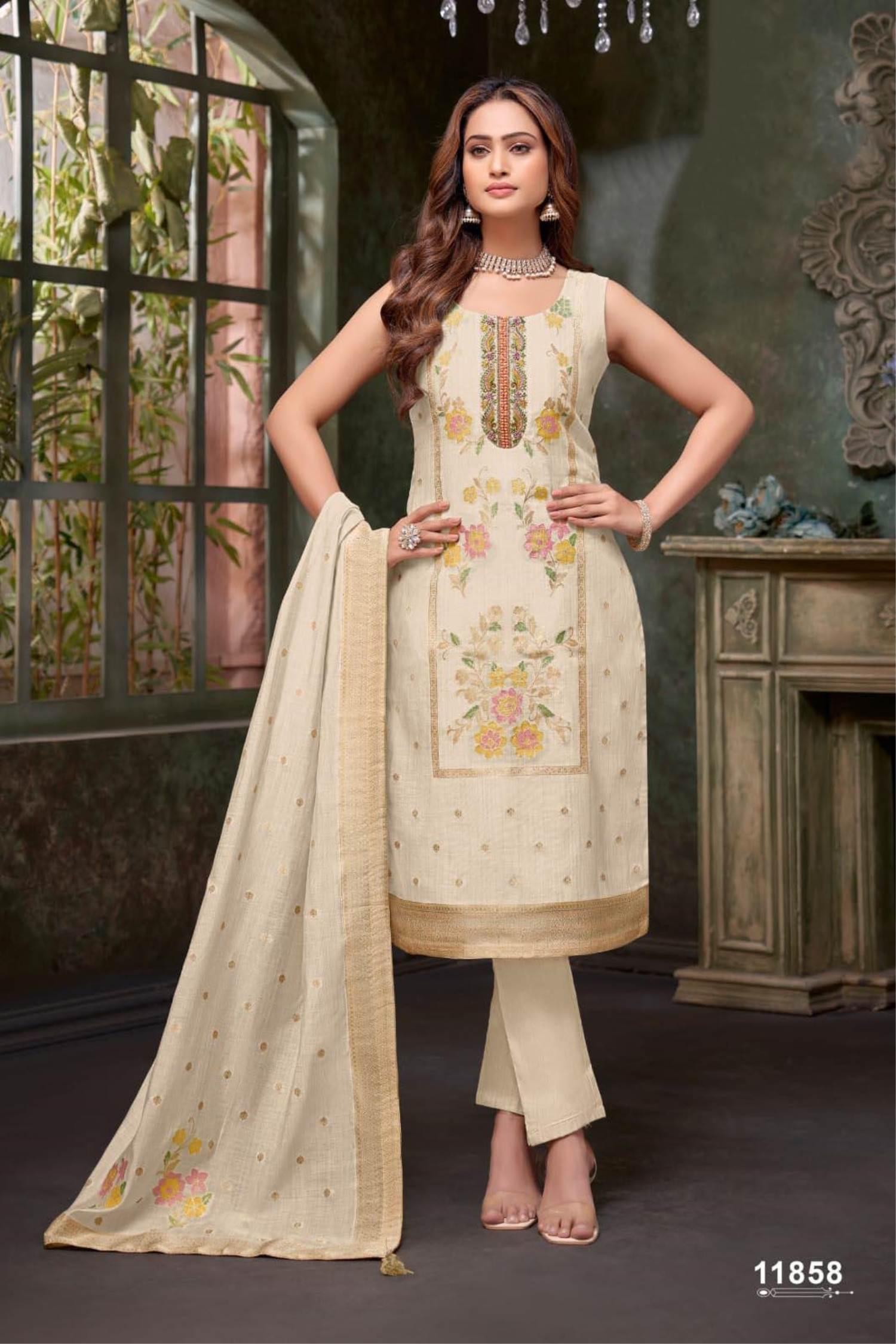 Cream Color Party Wear Designer Straight Long Suit :: ANOKHI FASHION