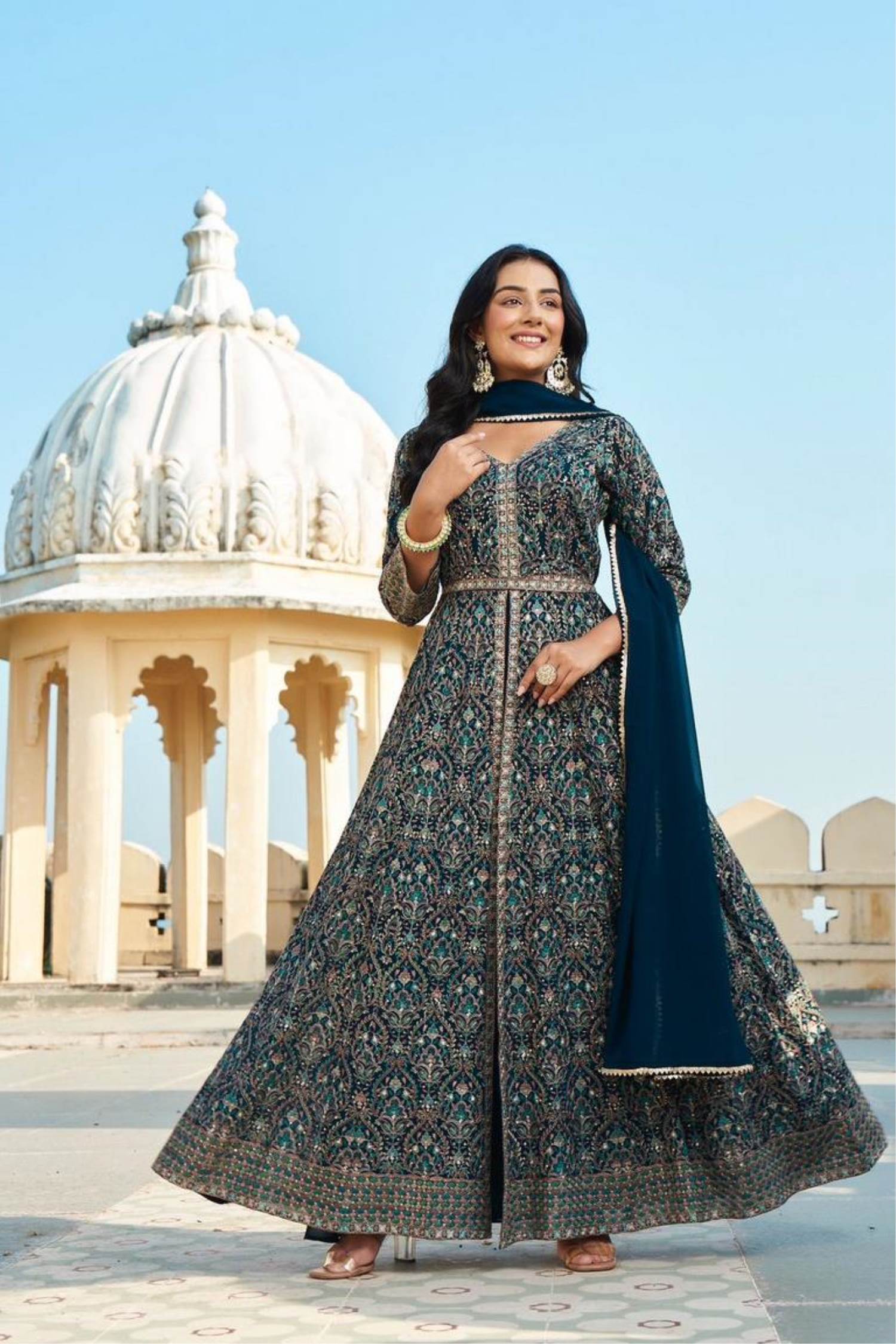 Peacock Color Party Wear Designer Indo-Western Plazo Suit :: ANOKHI FASHION