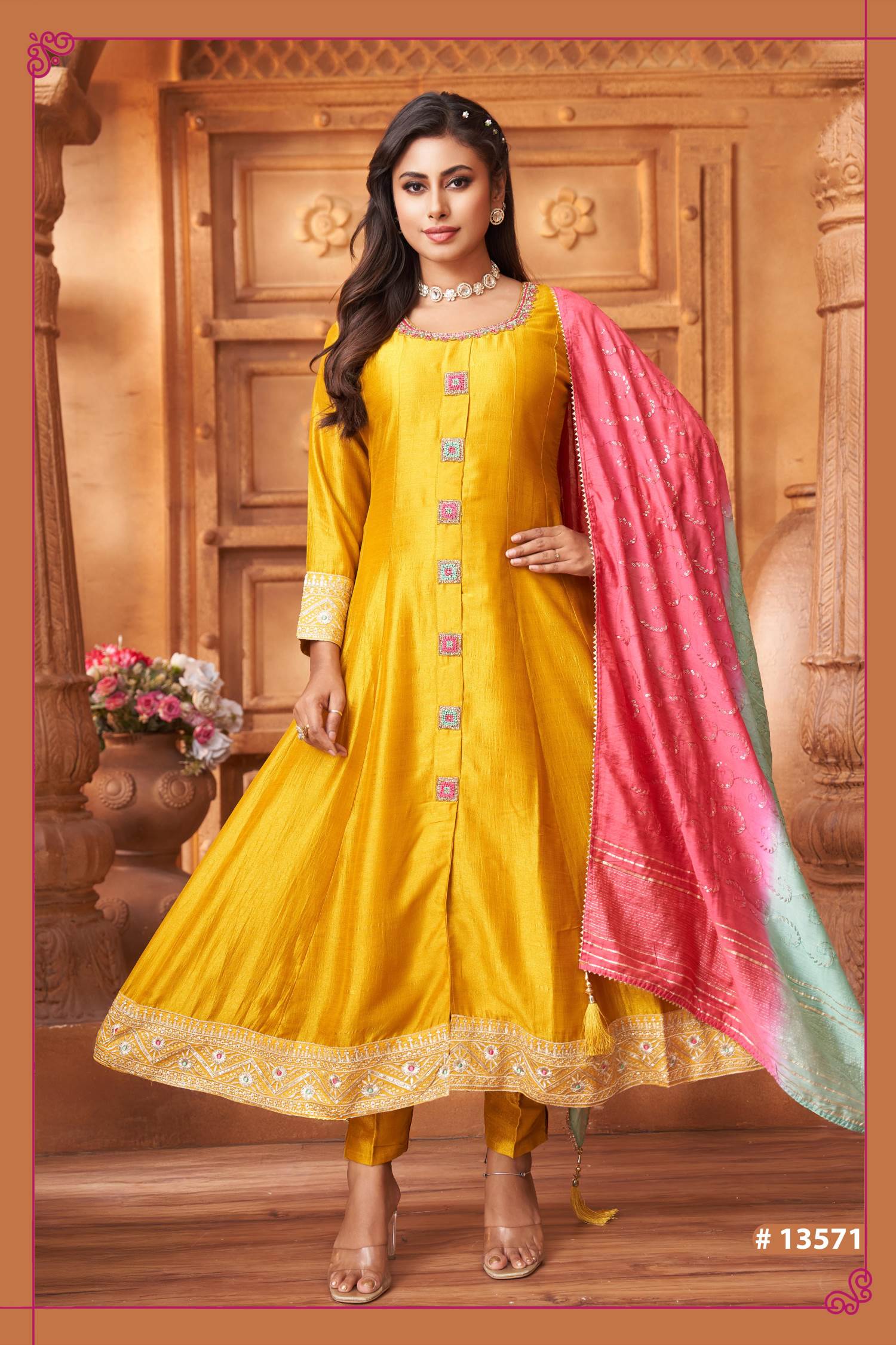 Mustard Color Party Wear Designer Anarkali Style Salwar Suit :: ANOKHI FASHION