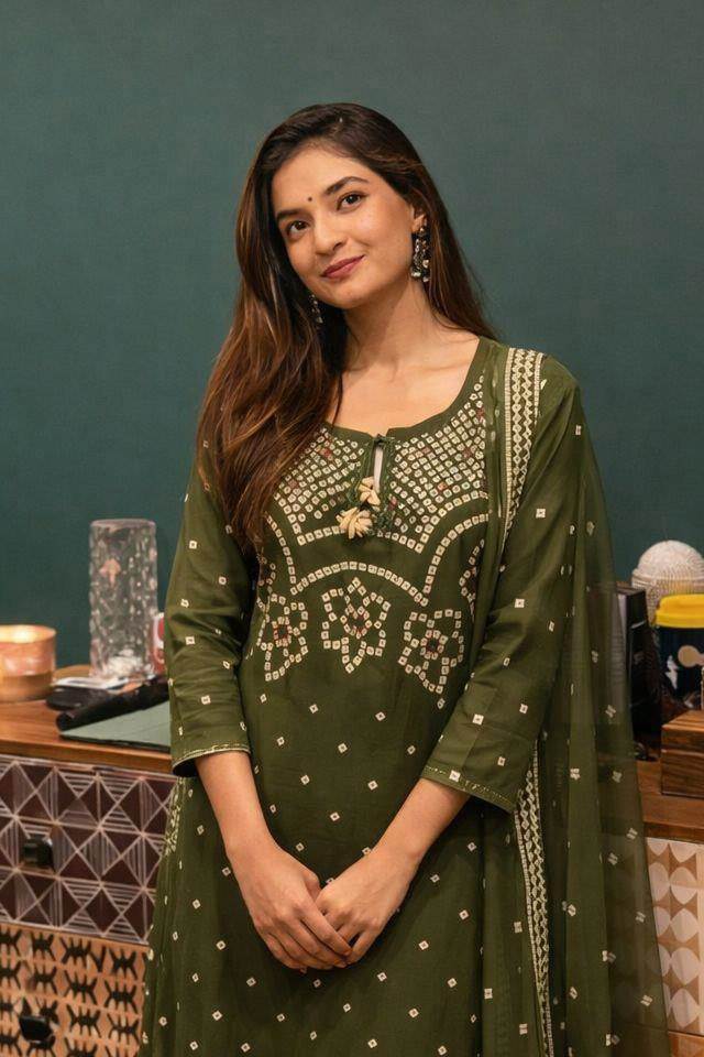 Mehandi Color Casual Collection Kurti Set :: ANOKHI FASHION