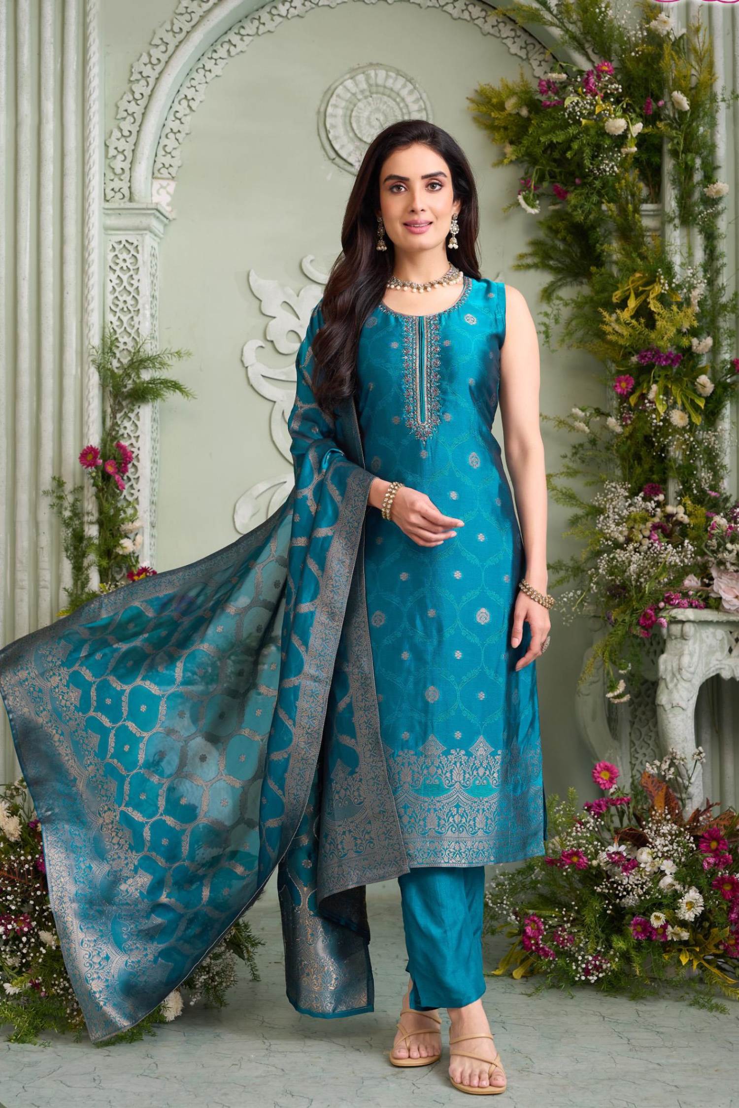 Peacock Color Party Wear Designer Straight Long Suit :: ANOKHI FASHION